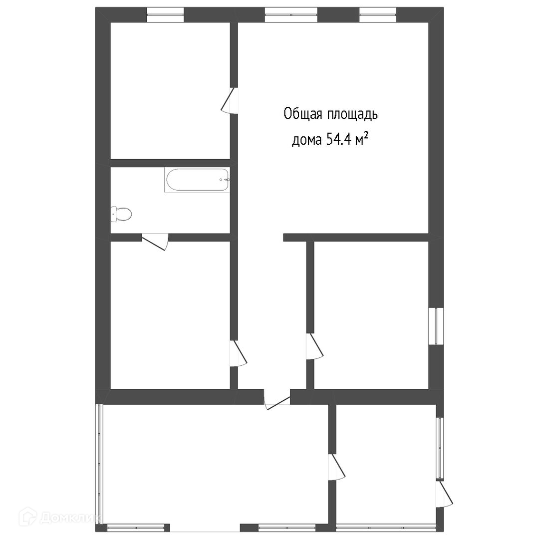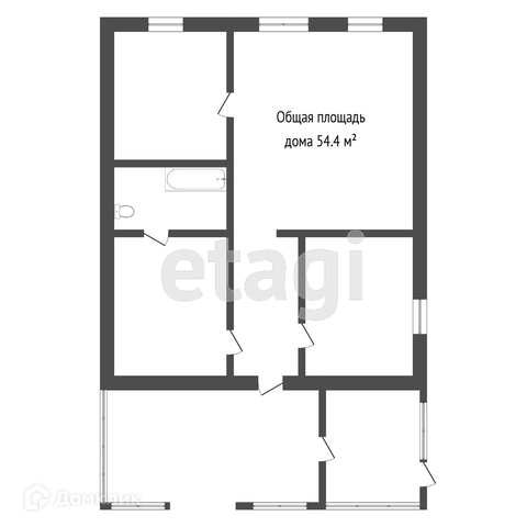Общая площадь 54.4 м2