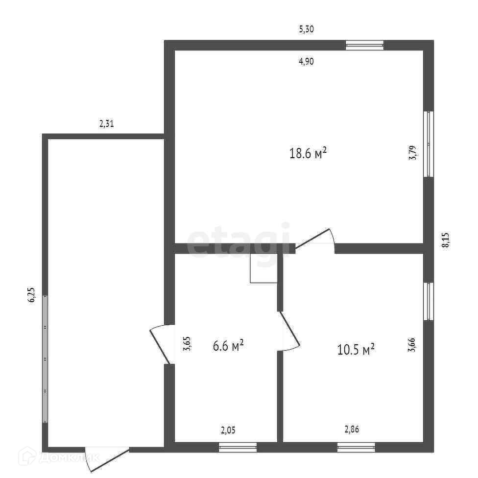Общая площадь 36.5 м2