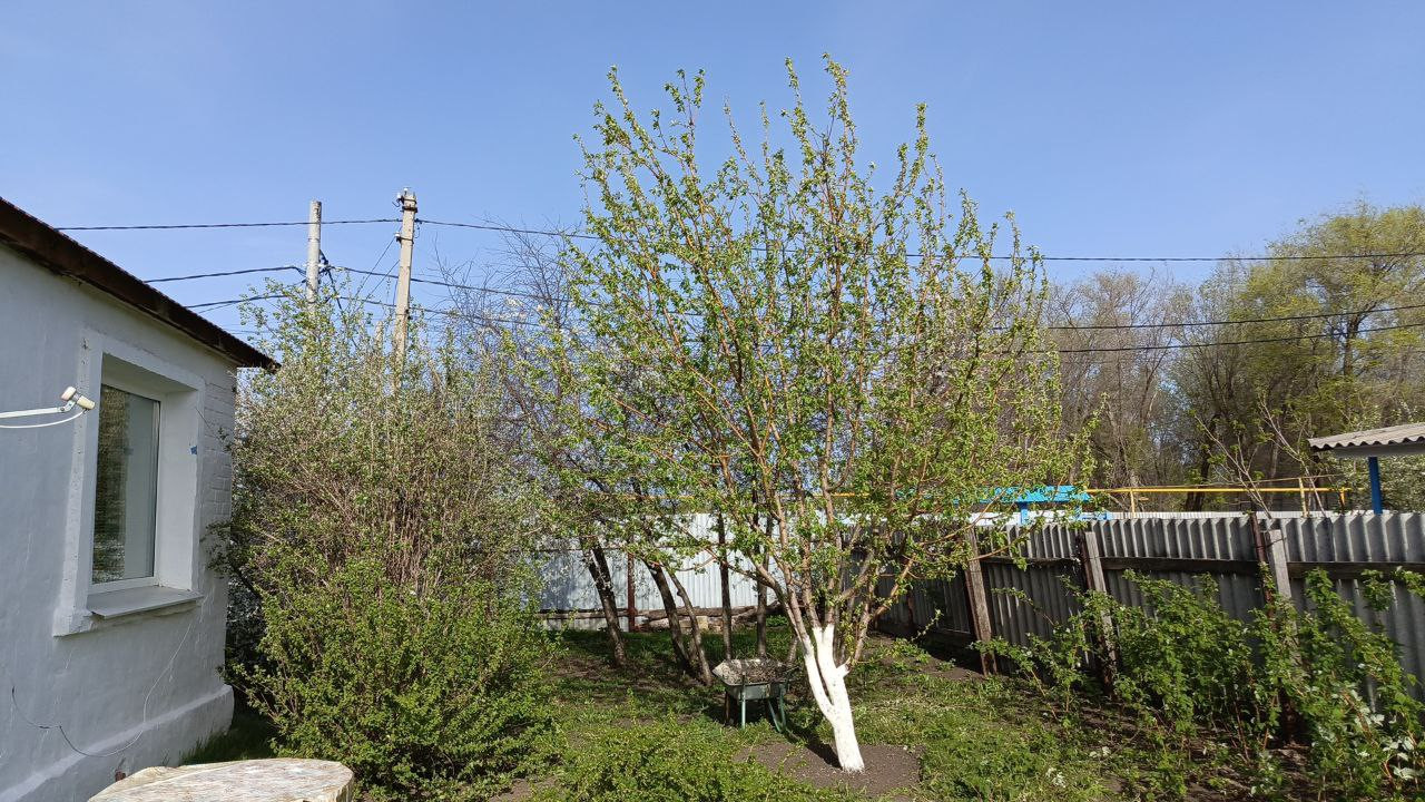 Есть сад с плодовыми деревьями.