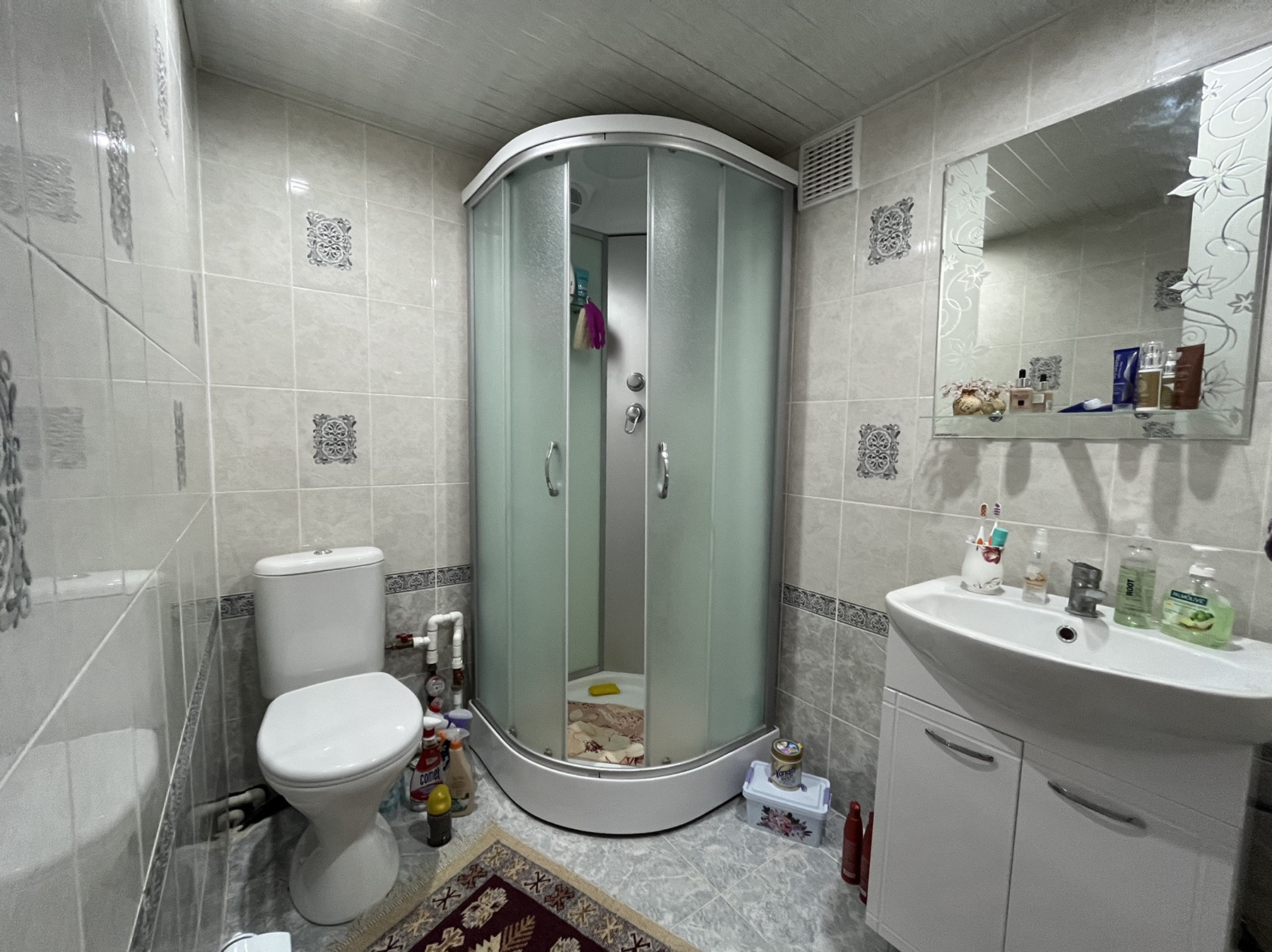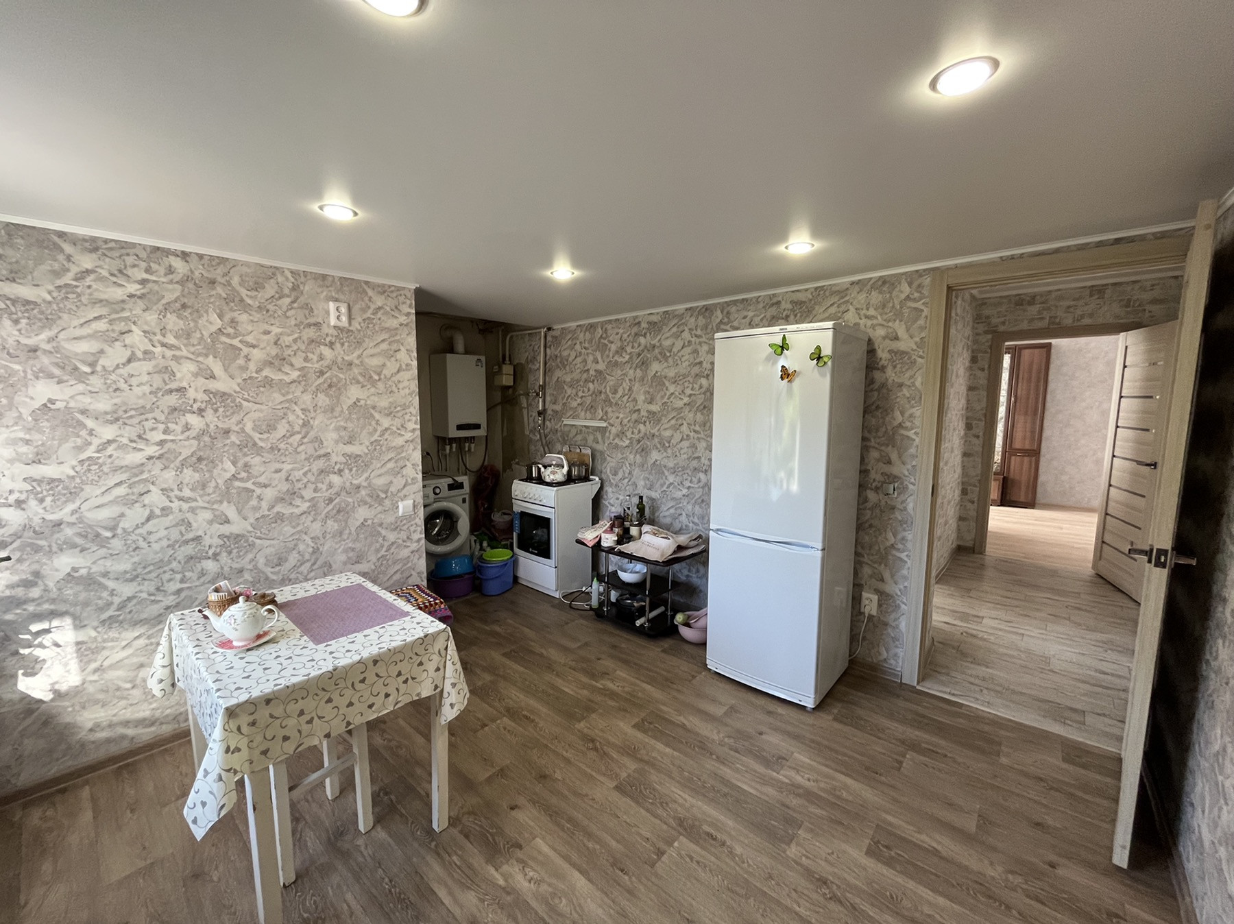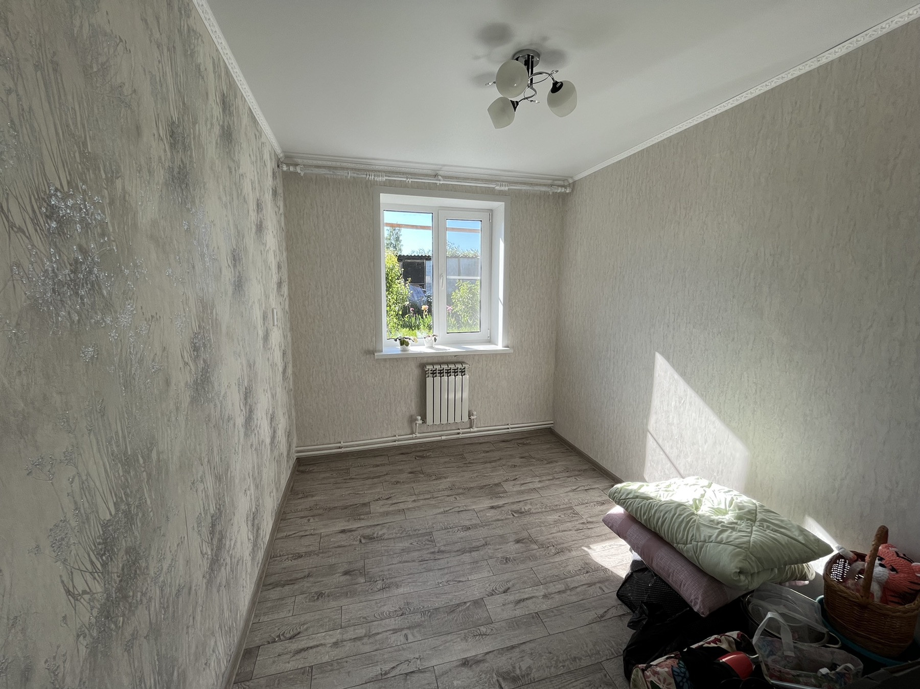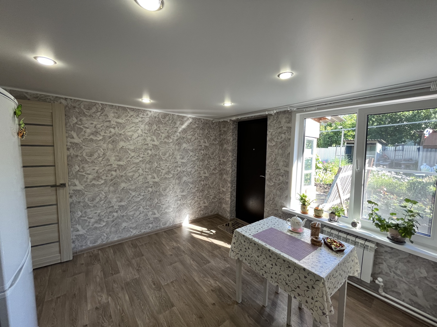 В доме выполнен ремонт: все окна пластиковые, натяжные потолки с точечными светильниками, новый линолеум, новые межкомнатные двери. Сан.узел совмещен, в кафеле современного образца, новая сантехника. Вложений не требует, заезжай и живи.