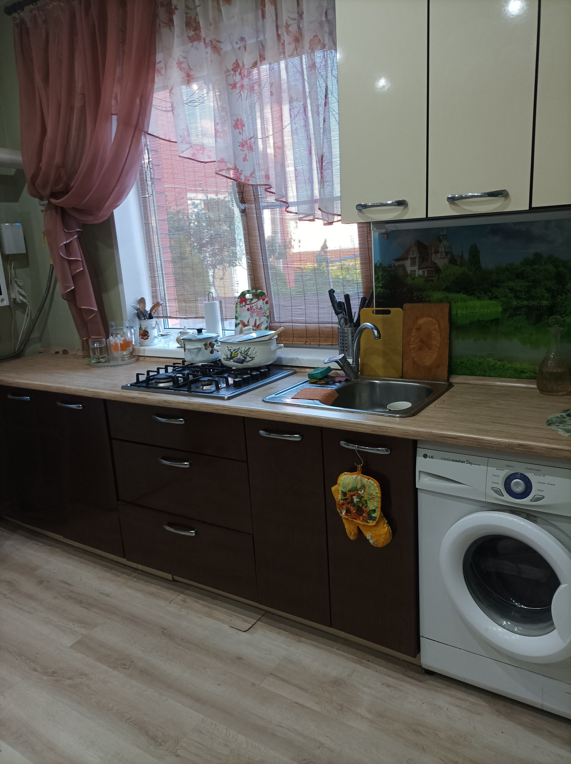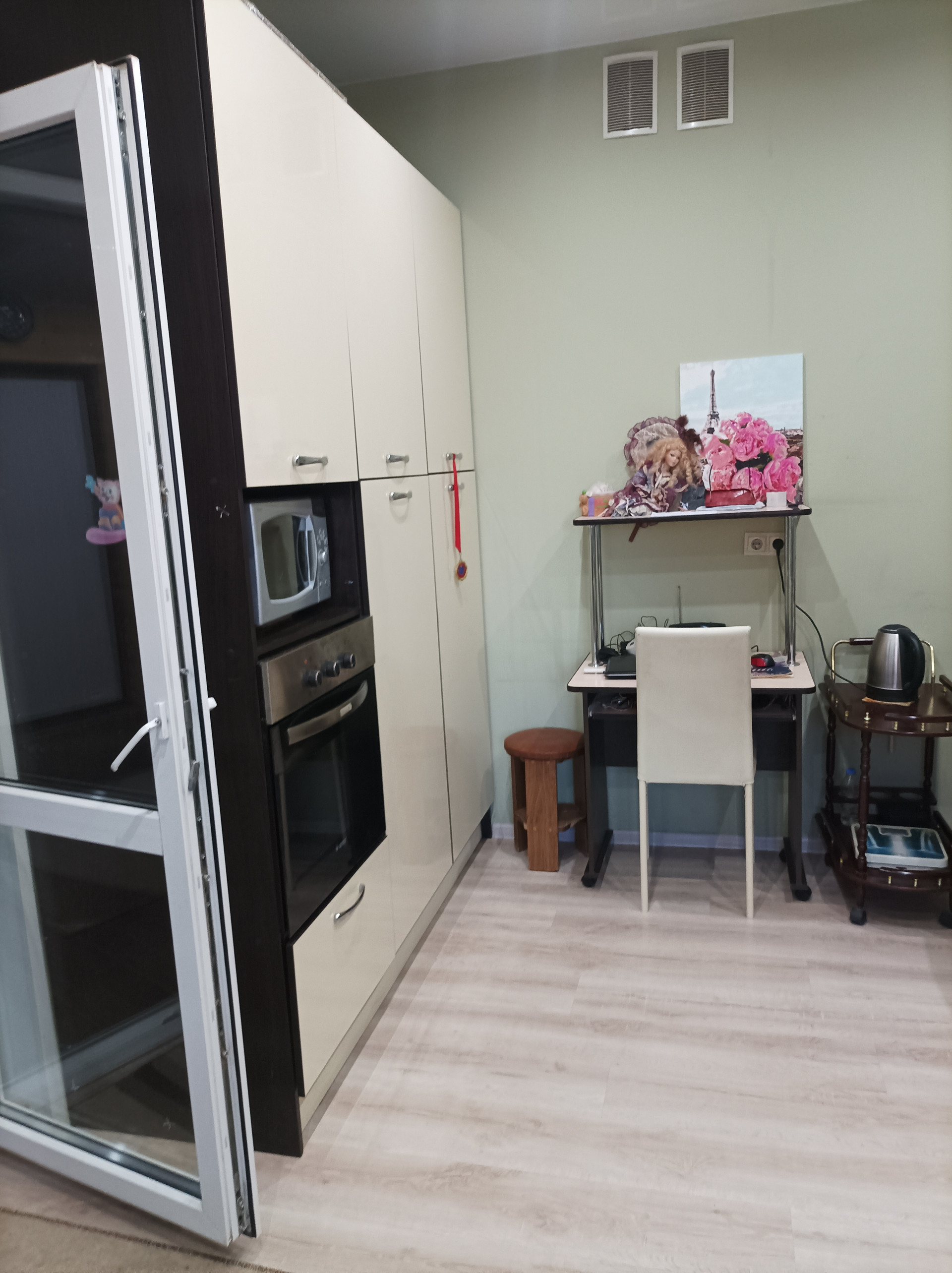 Пластиковое Остекление полностью (1,2 этаж). Хороший качественный ремонт сделан, остается частично мебель и техника.