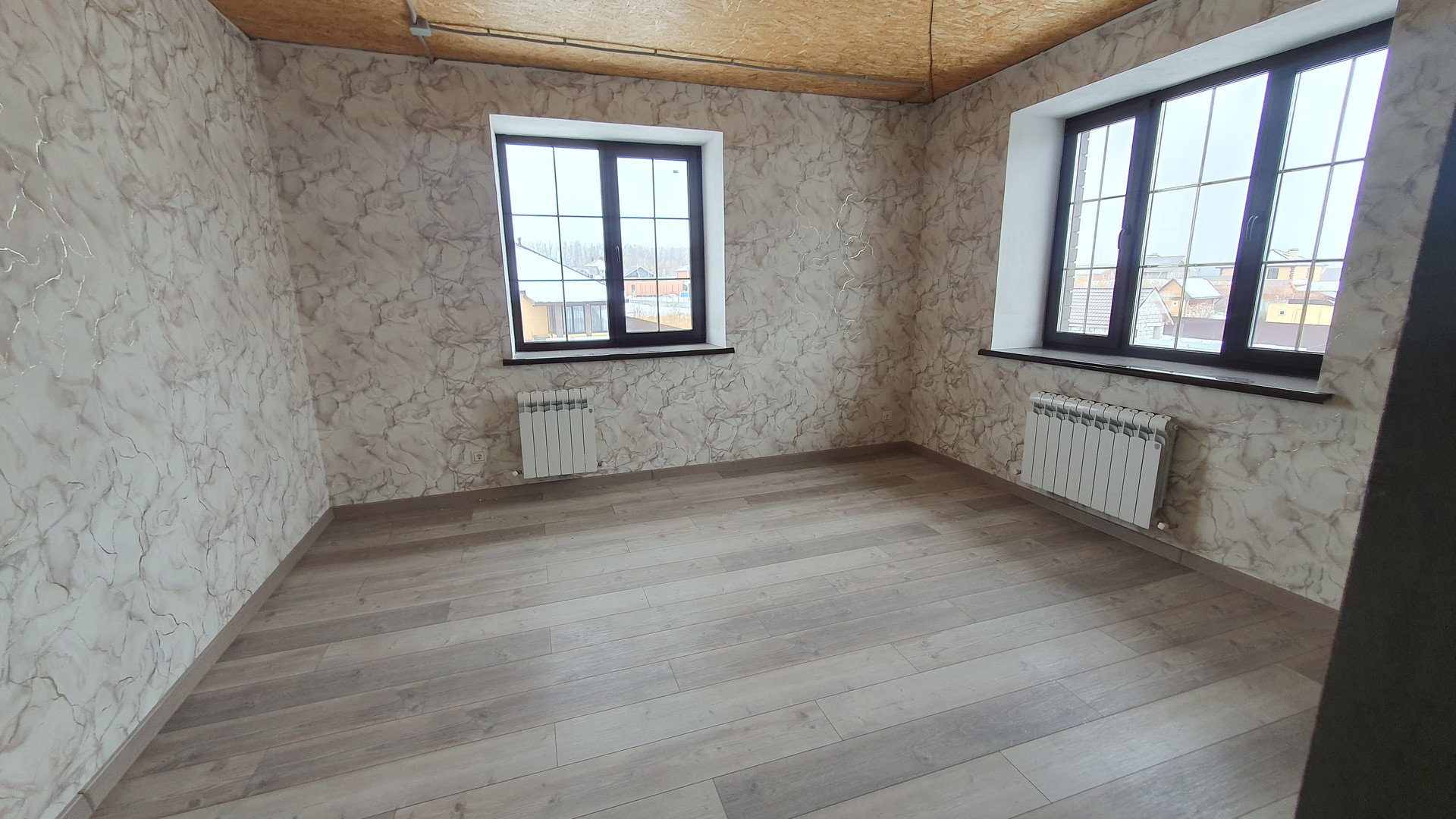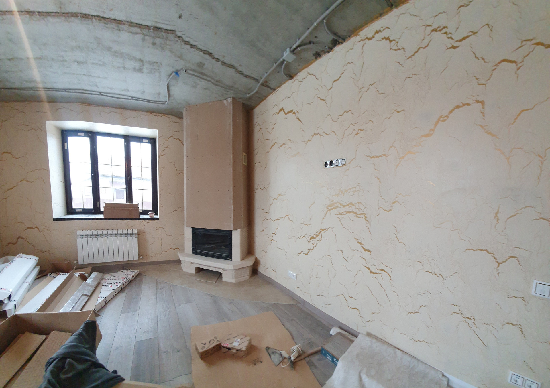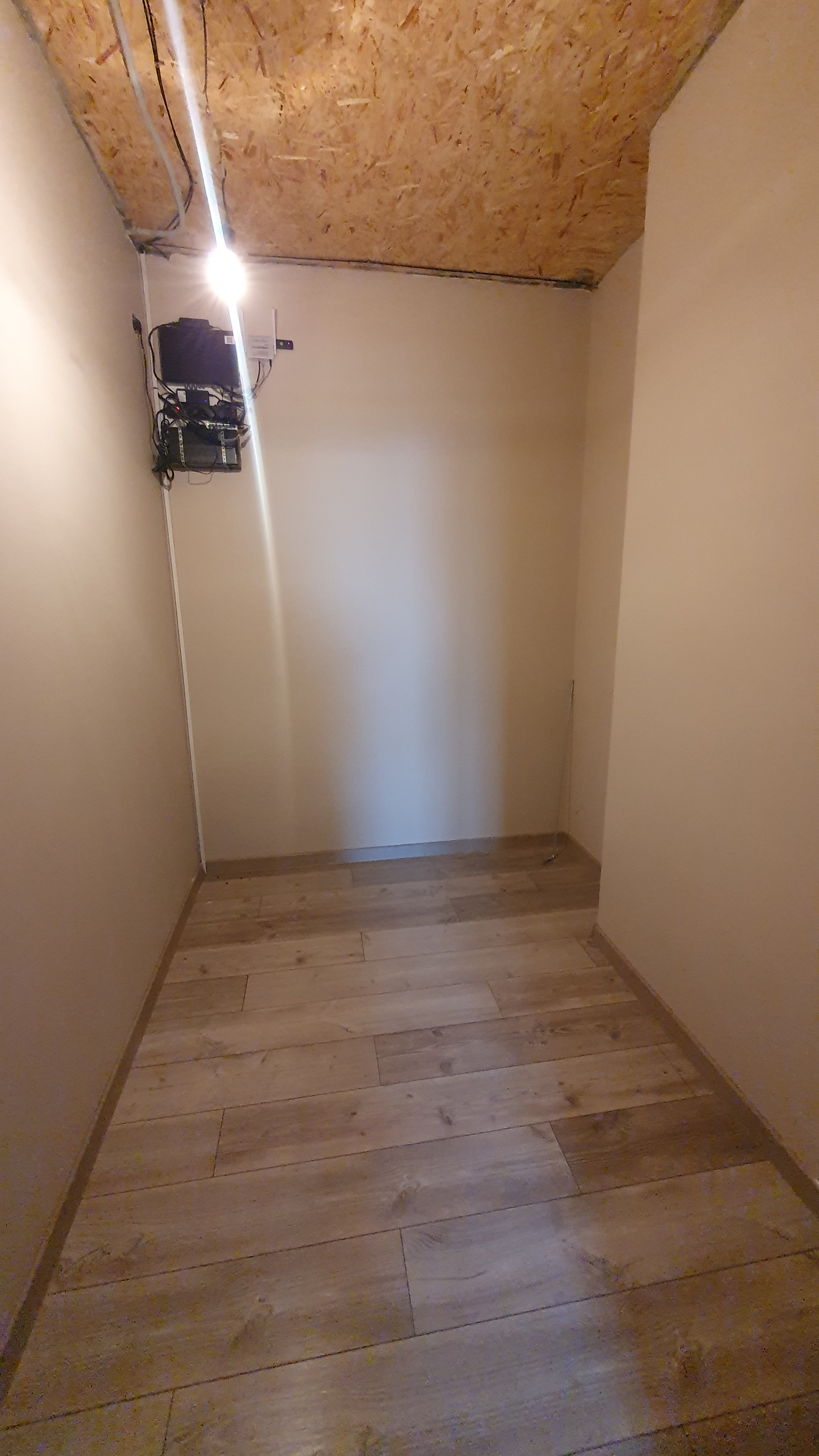 1 этаж: прихожая, котельная с двумя котла и (электрический и газовый), кухня - гостиная с выходом на террасу, с действующим дровяным камином, санузел с душем в кафеле, комната, гардеробная. По всему первому этажу тёплый пол.
