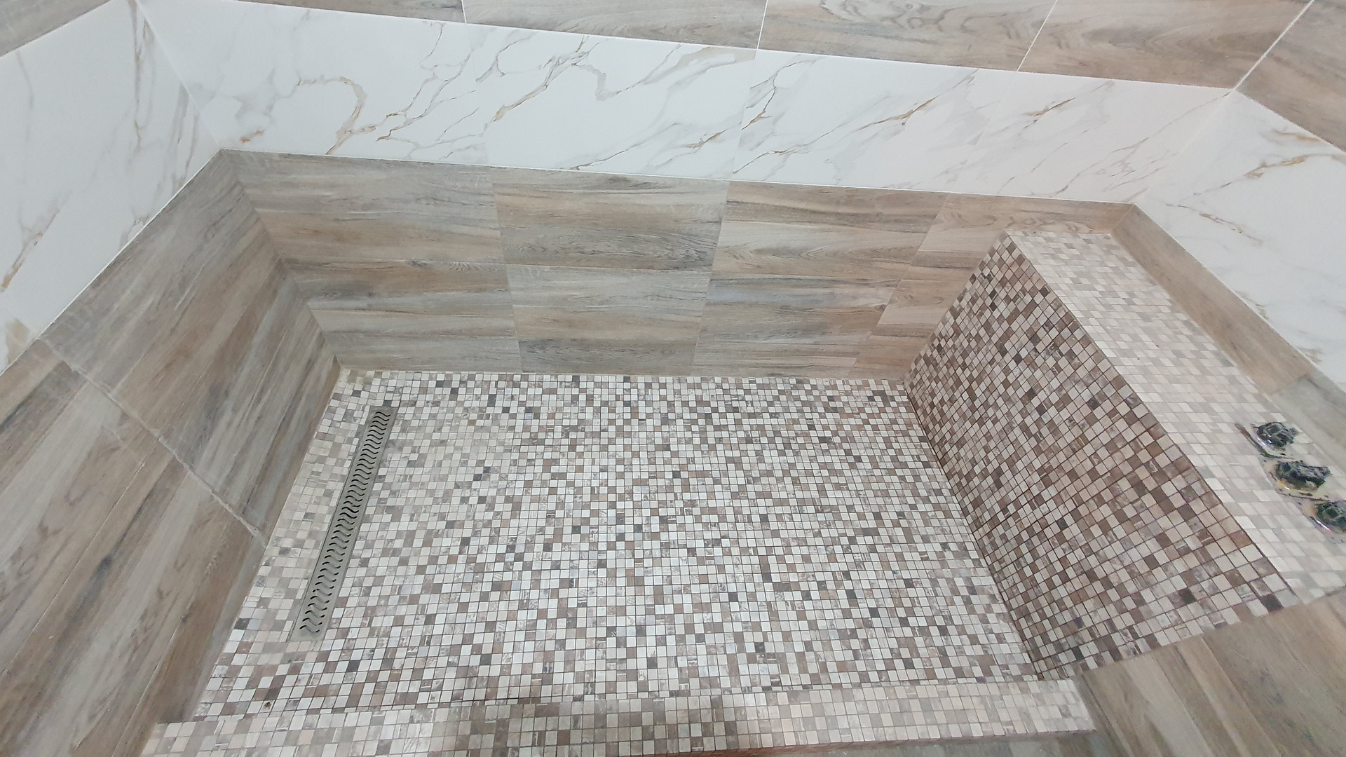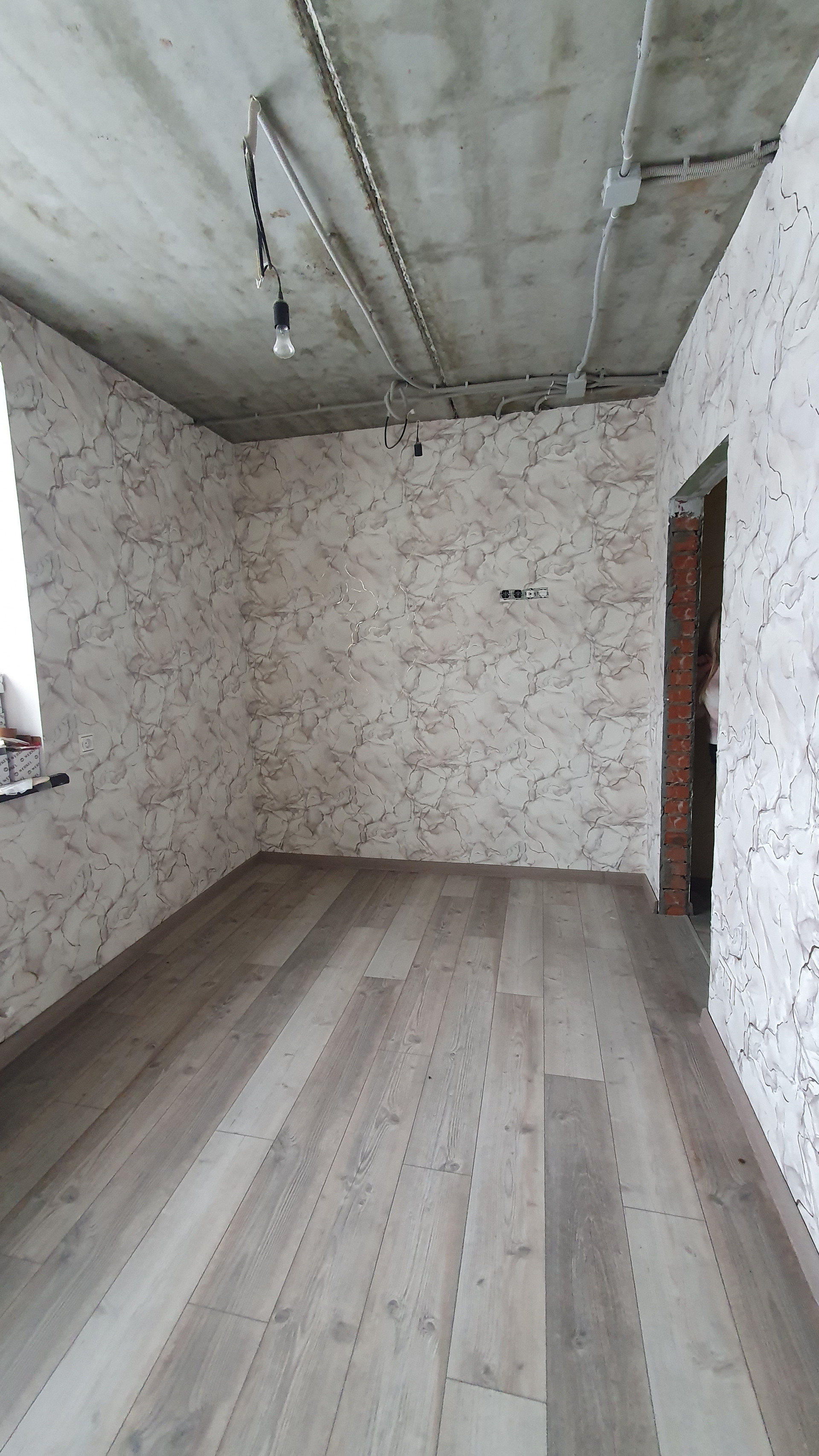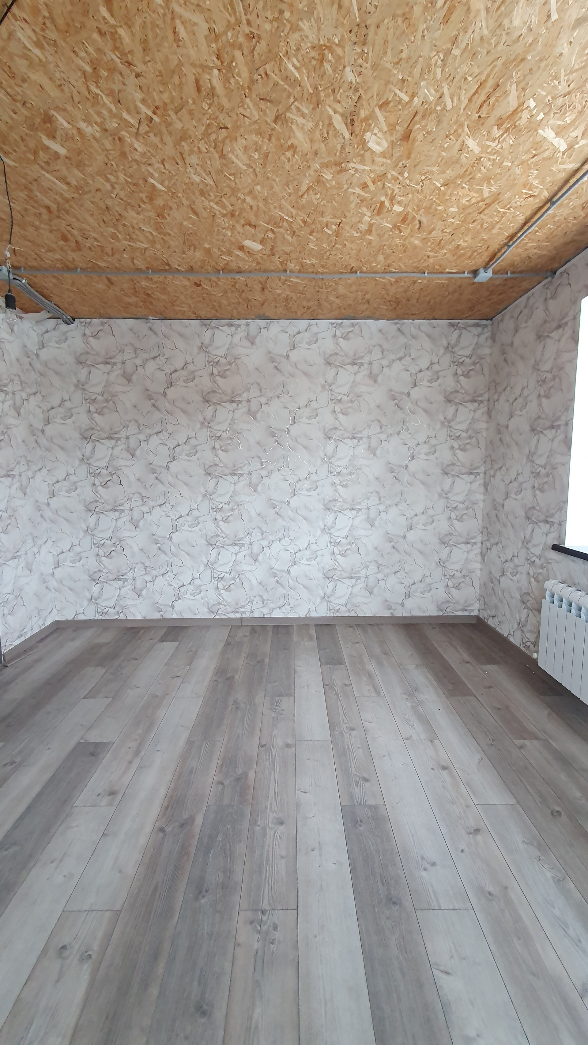 1 этаж: прихожая, котельная с двумя котла и (электрический и газовый), кухня - гостиная с выходом на террасу, с действующим дровяным камином, санузел с душем в кафеле, комната, гардеробная. По всему первому этажу тёплый пол.