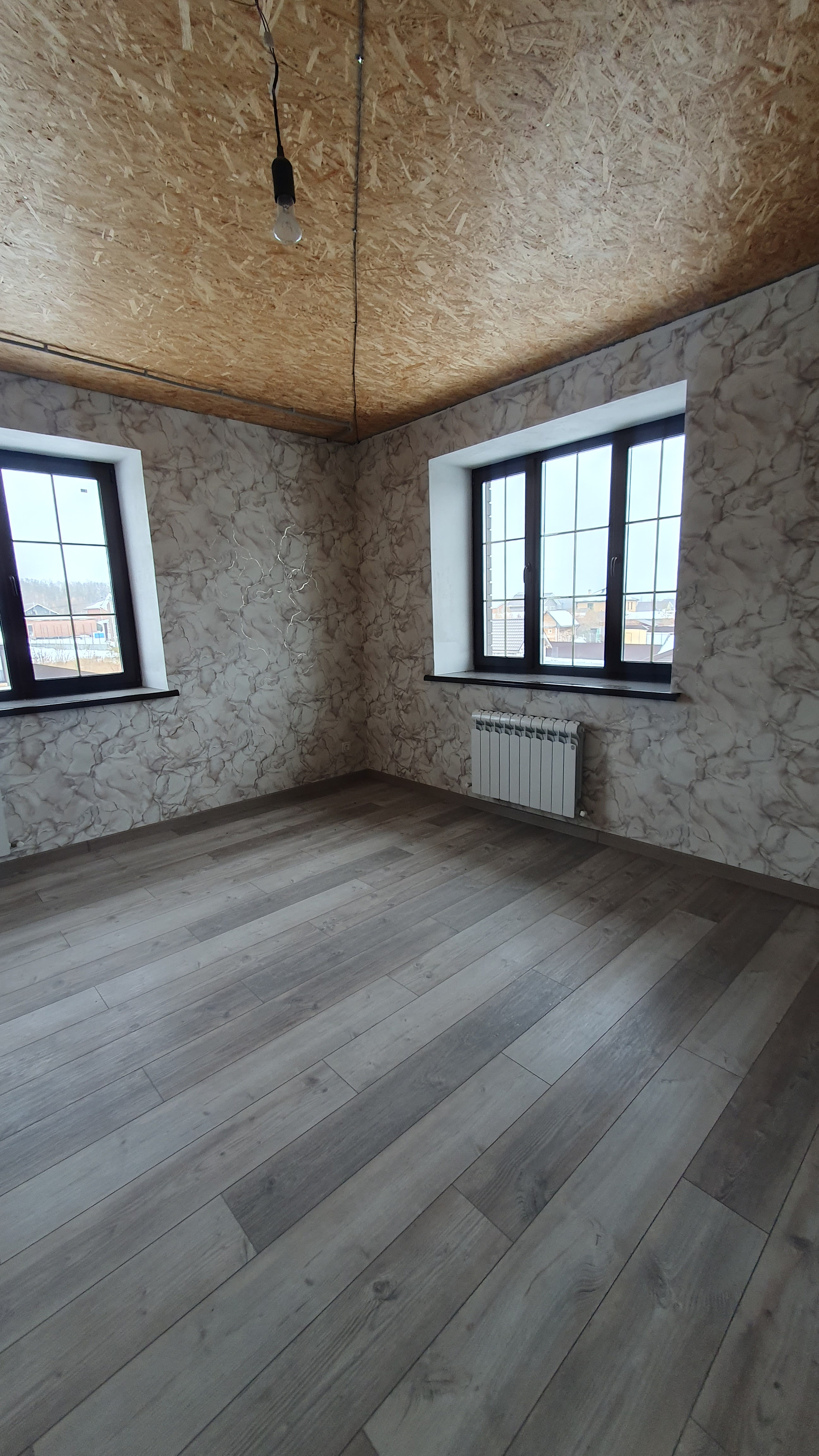 2 этаж: холл, 2 спальни, гардеробная, санузел с ванной в кафеле, выход на чердак с потайной лестницей.