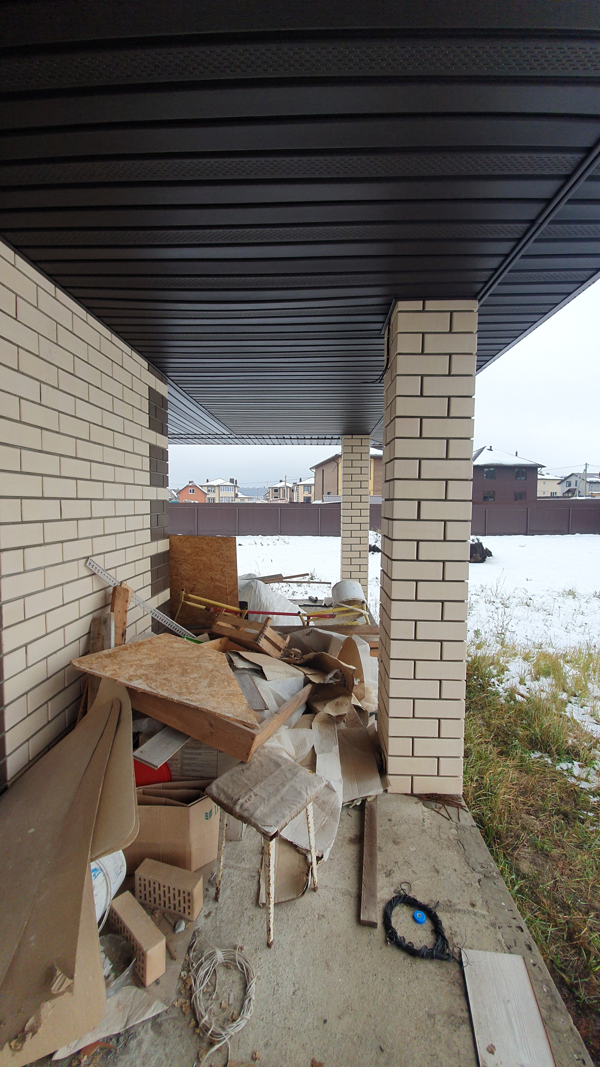 Крыша дома покрыта гибкой черепицей.