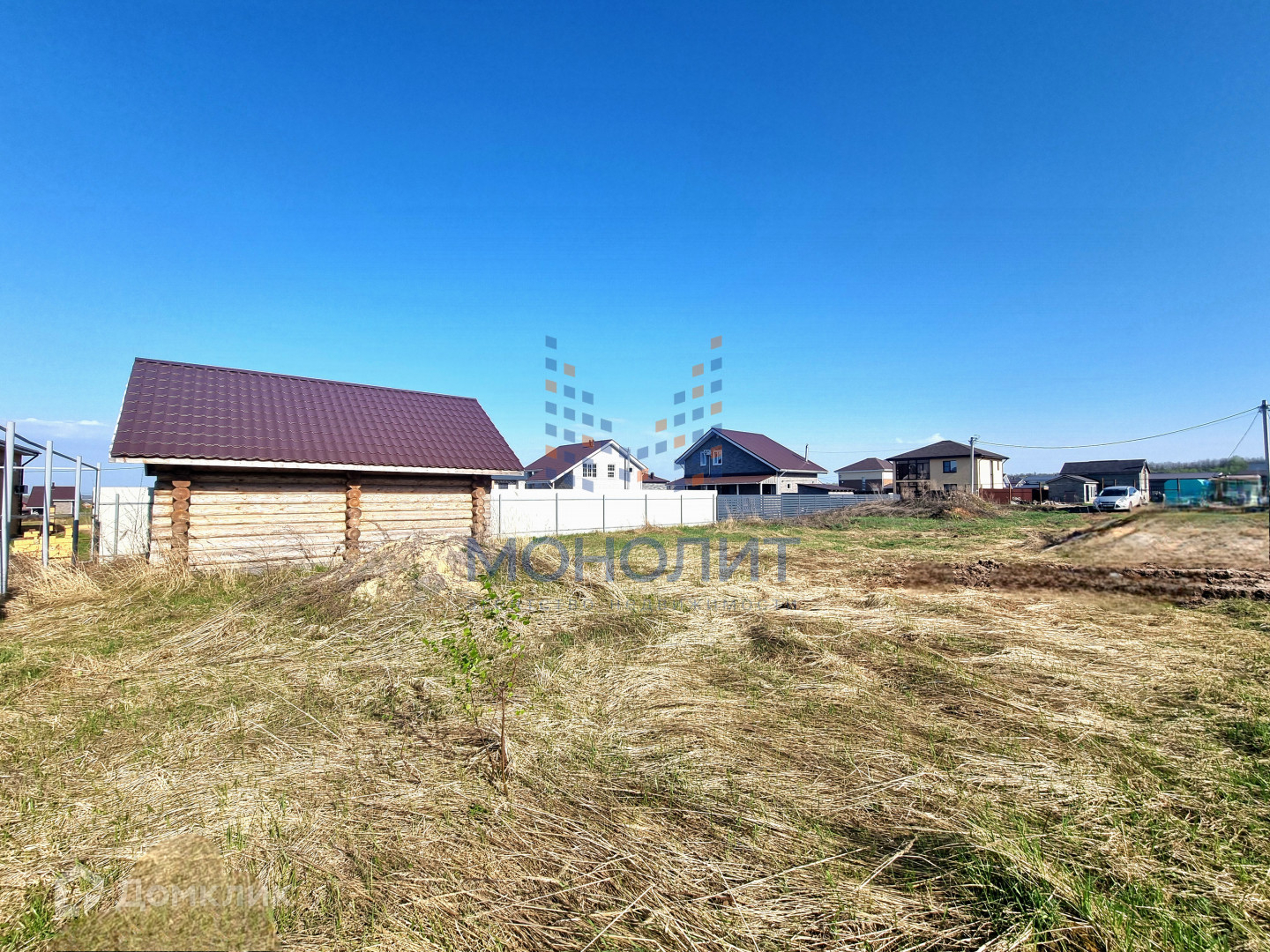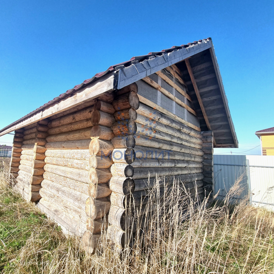 * На участке стоит сруб для бани на фундаменте.