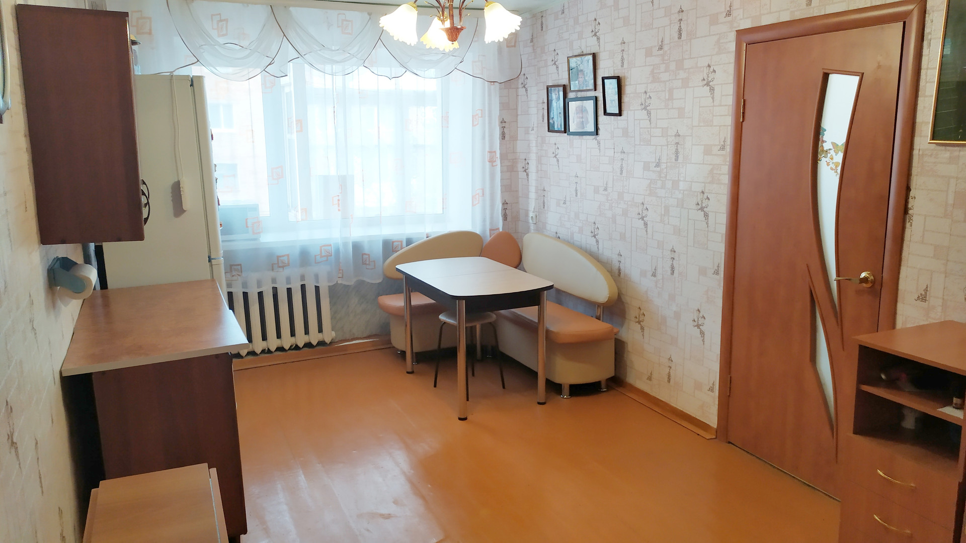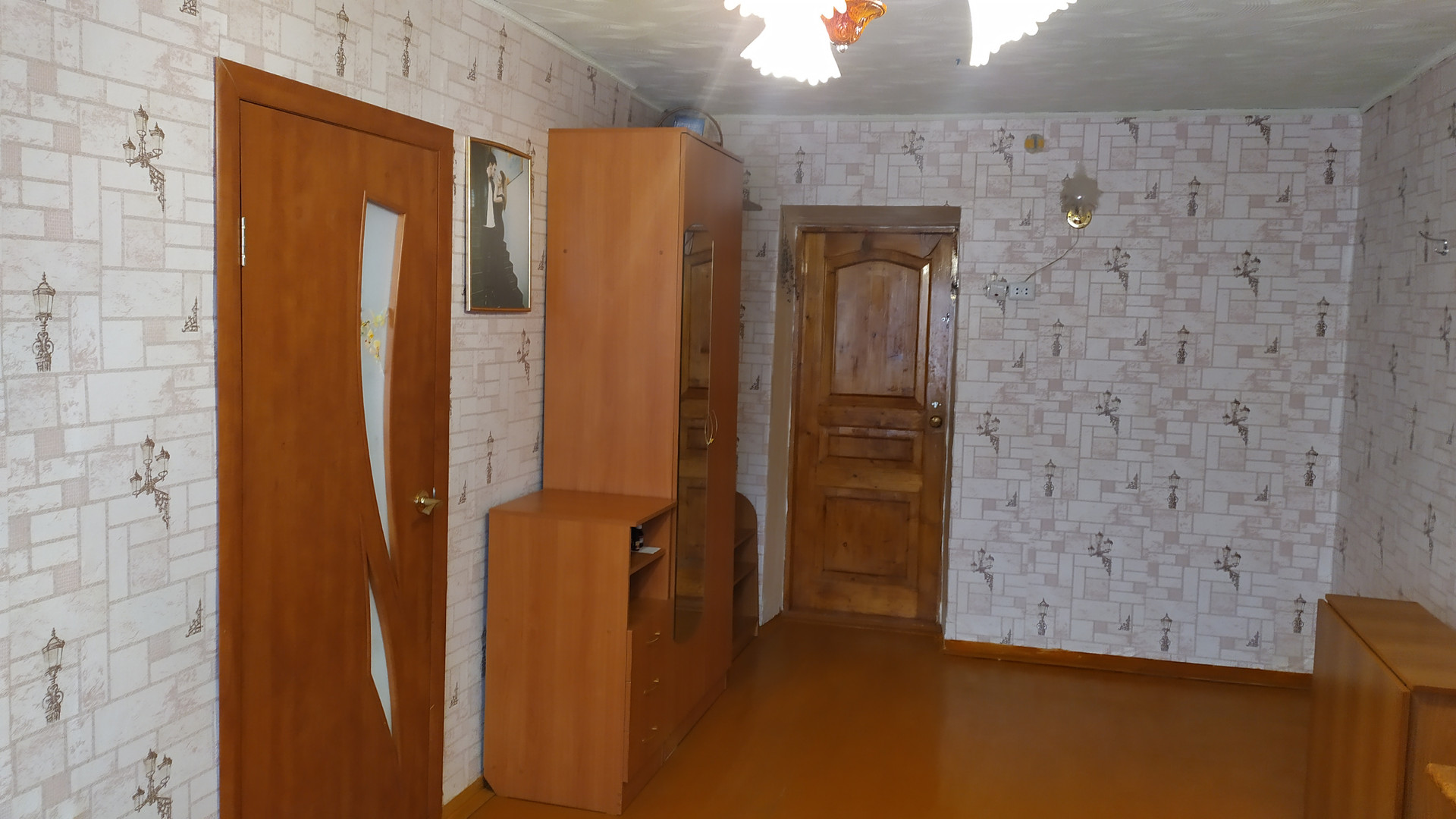 Комнаты в жилом состоянии. Балкон застеклен, выход из комнаты. Места общего пользования в хорошем состоянии. Остается кухонный гарнитур, шкаф в прихожей. За стеной комнаты кухонная зона, что даёт возможность при желании установить душевую кабину в комнате.