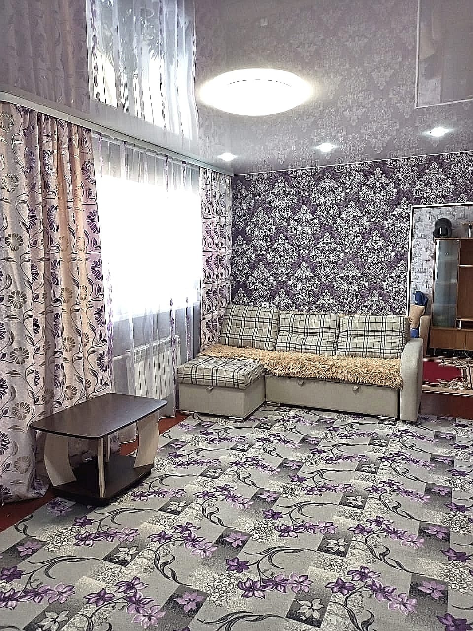 В квартире установлены евро окна, межкомнатные двери в одном стиле,обои хорошего качества, линолеум частично. Натяжные потолки со встроенными светильниками, управление с пульта.Санузел совмещенный, просторный, частично в кафеле.