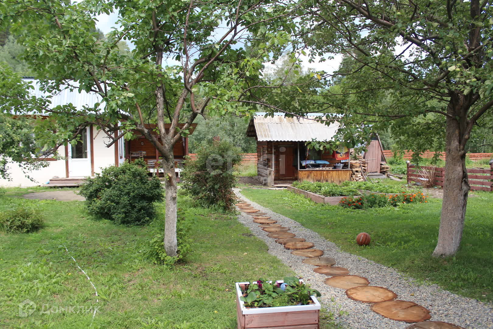 Участок усажен различными плодовыми деревьями: яблони, груши, виноград, вишня, жимолость, малина, смородина и клубника радуют своим сочным обилием. Вас ждёт удобный кирпичный гараж, гостевой дом площадью 20 кв.м. для круглогодичного проживания.