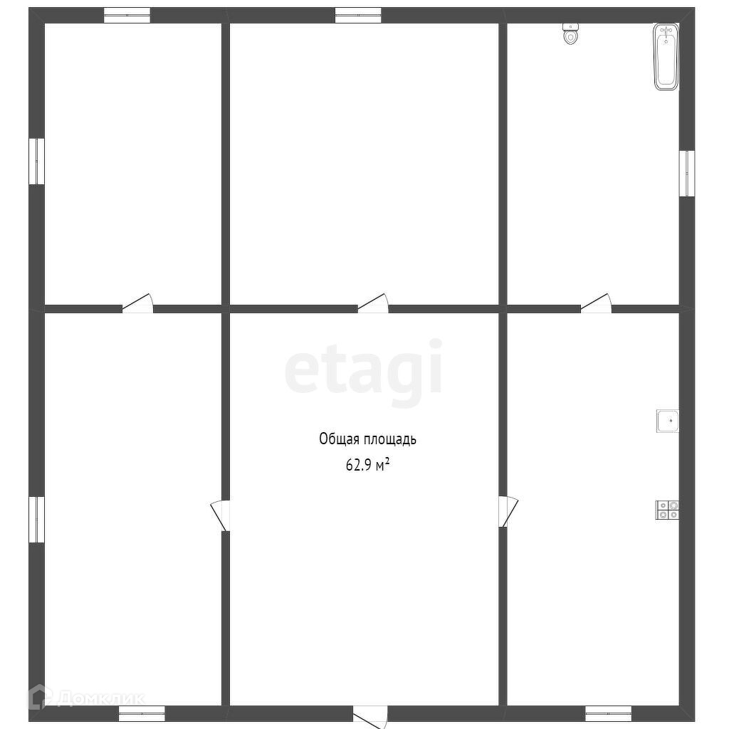 Общая площадь 62.9 м2