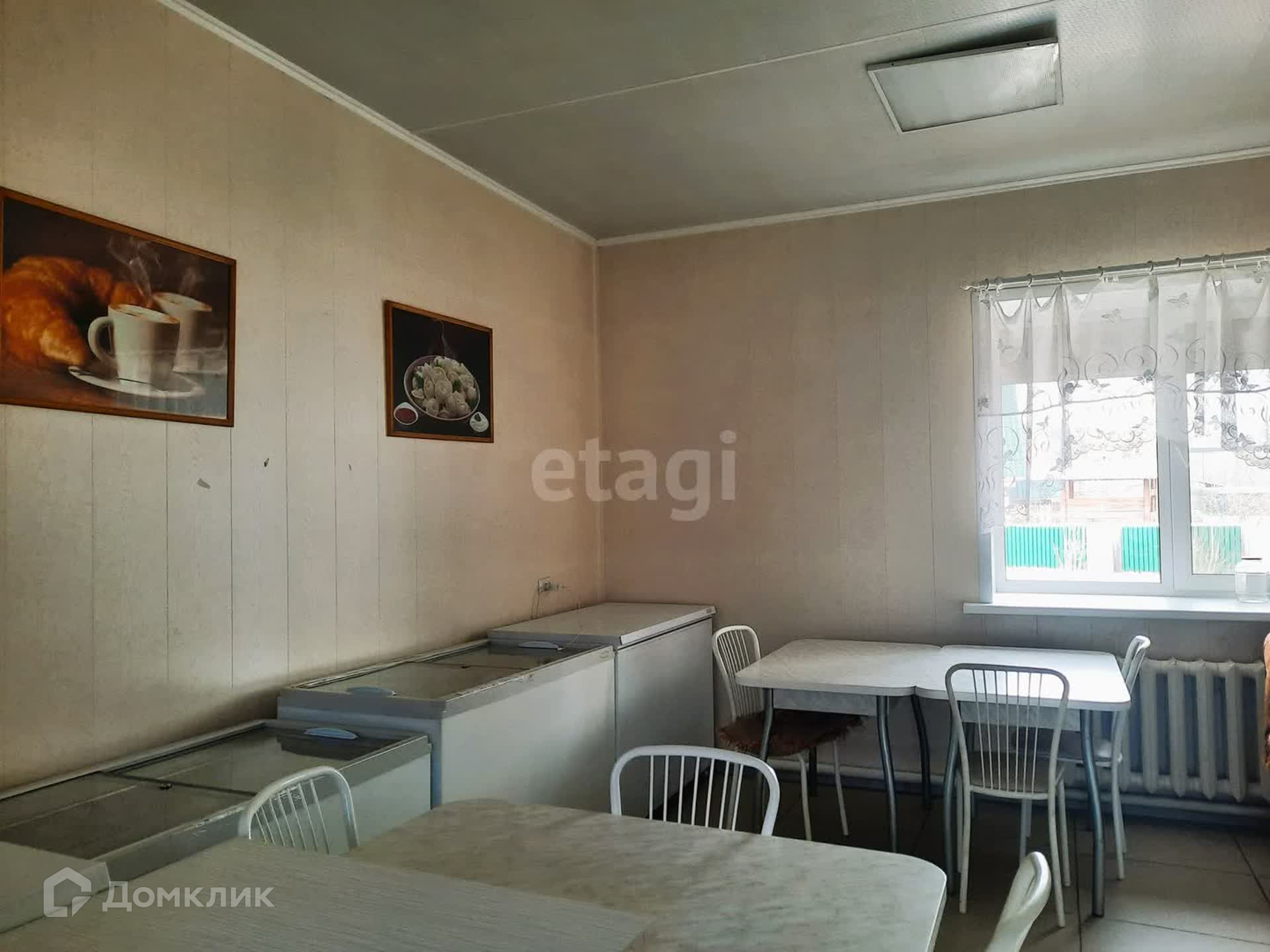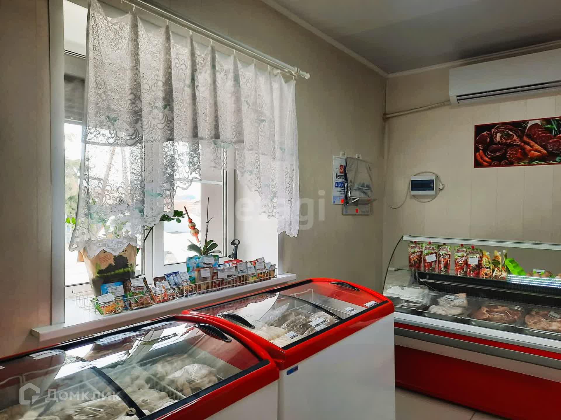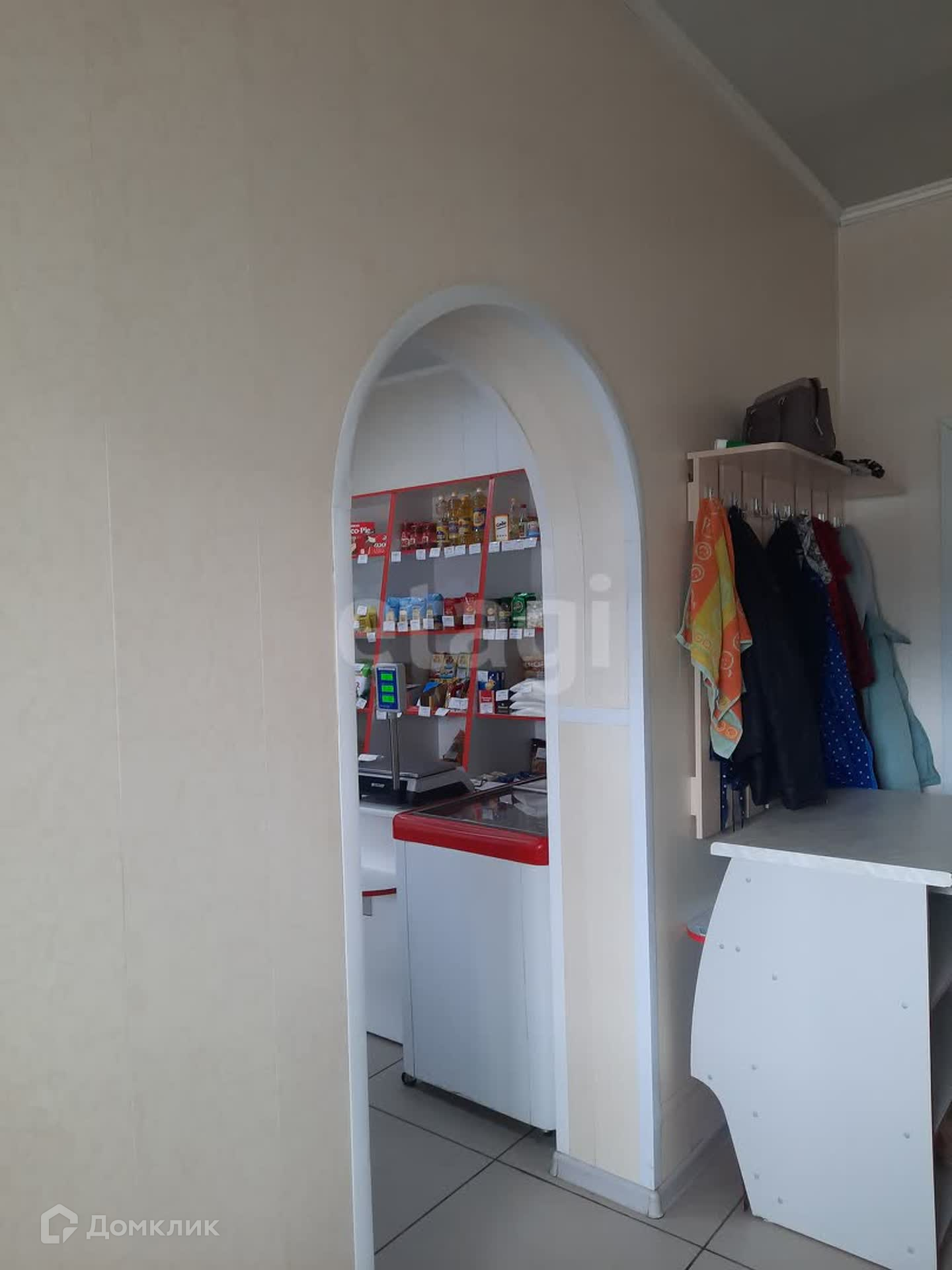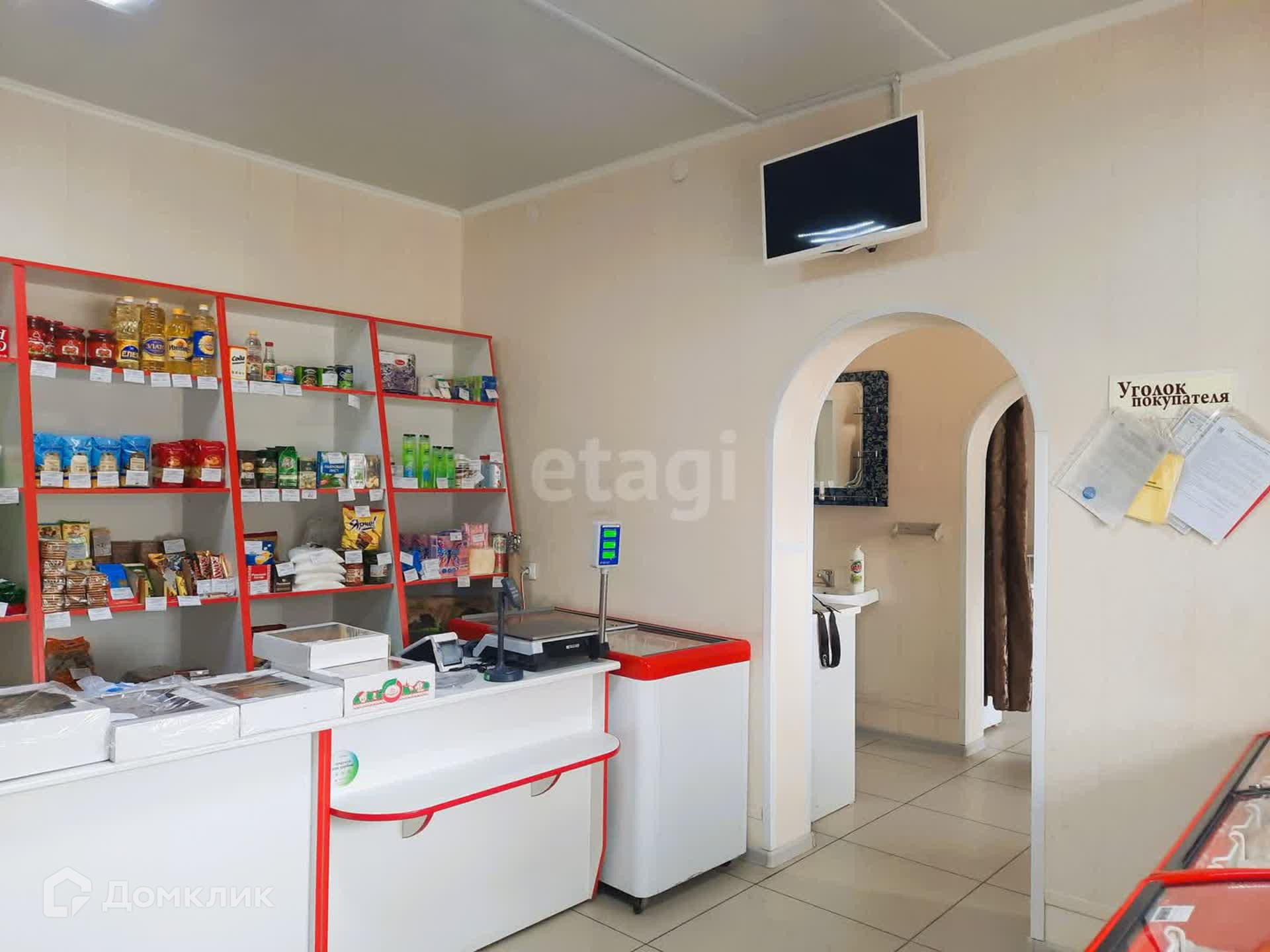 Здание имеет два зала, одно из которых используется как продуктовый магазин, другое - как кафе быстрого питания. Общая площадь составляет 75 кв.м. Есть и вспомогательные помещения, склад, санузел. Два входа: основной и для разгрузки. В стоимость входит всё торговое оборудование: промышленная морозилка около 300 литров, торговые холодильные лари, прилавки, промышленная мясорубка, тестомес и т.д.