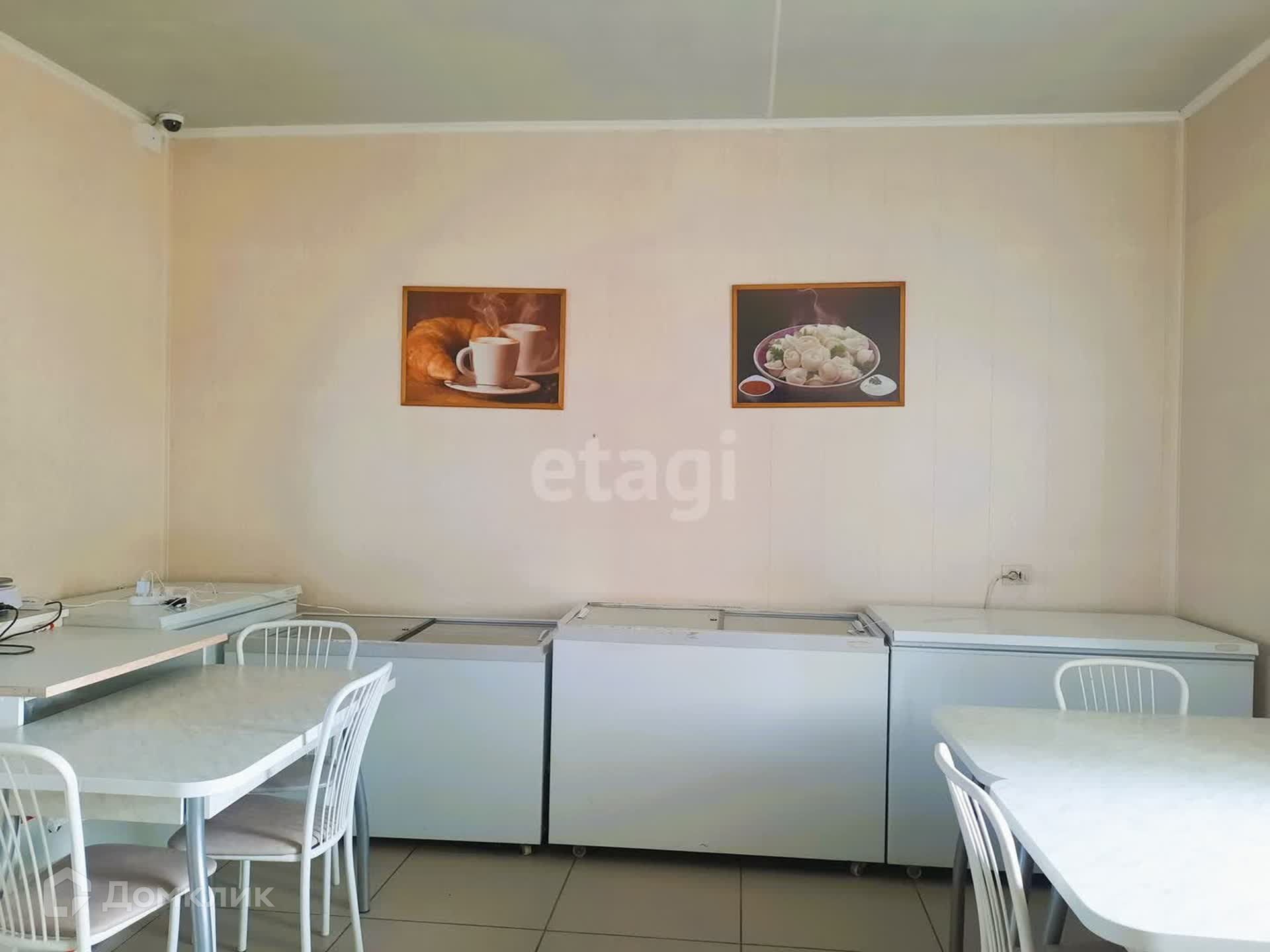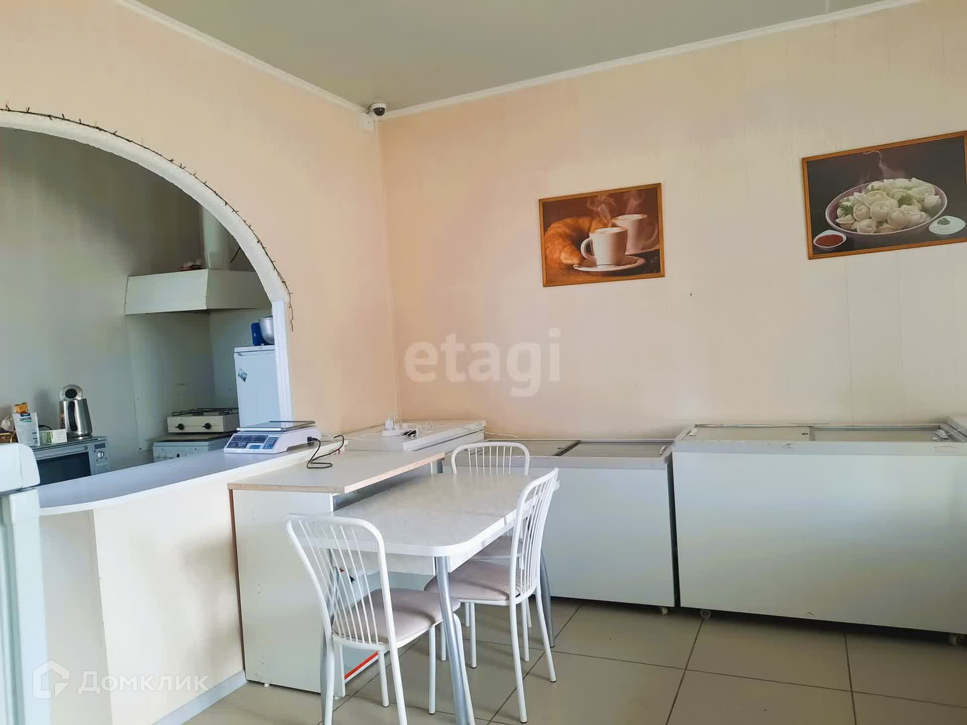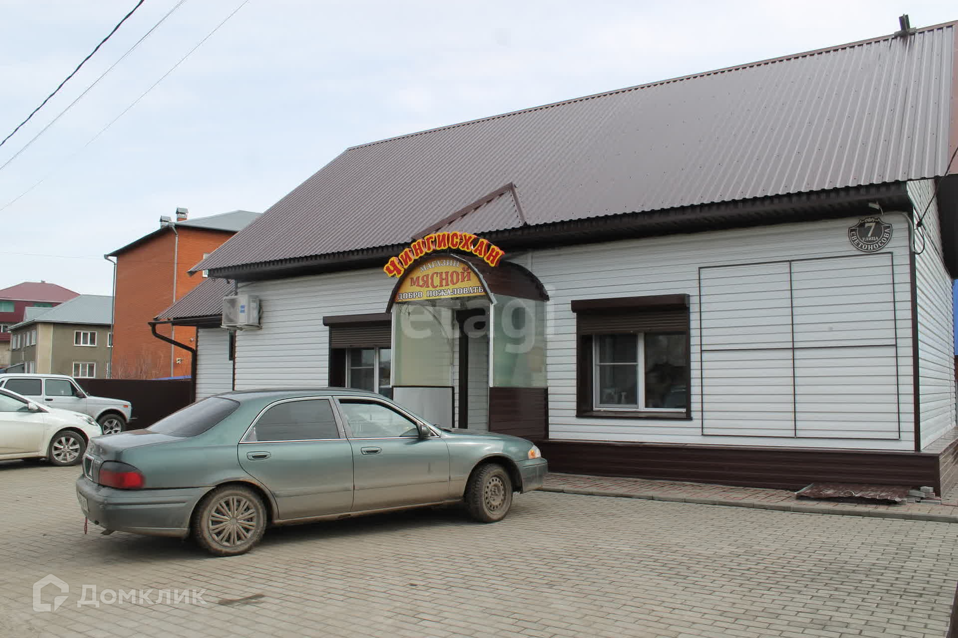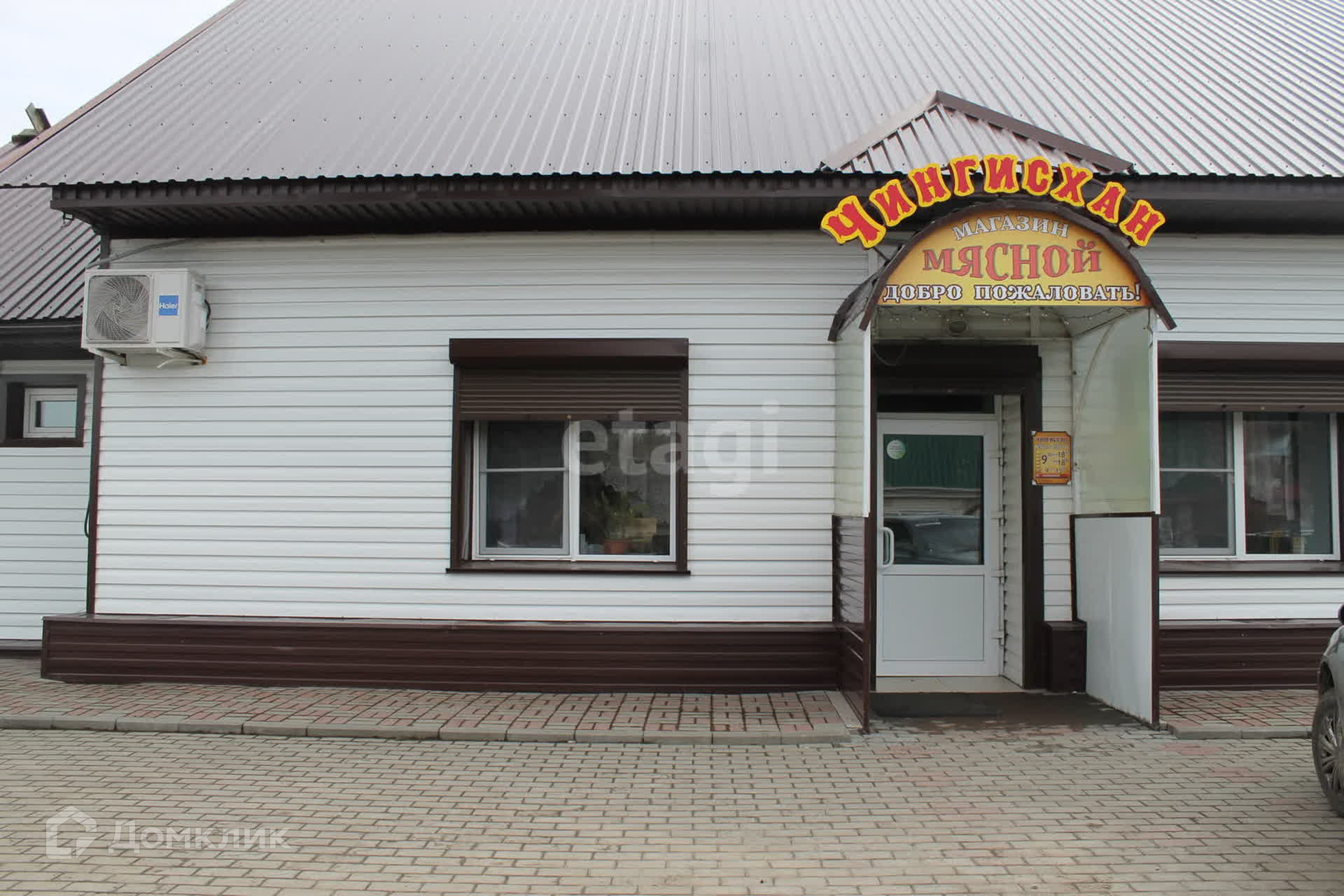 Здание имеет два зала, одно из которых используется как продуктовый магазин, другое - как кафе быстрого питания. Общая площадь составляет 75 кв.м. Есть и вспомогательные помещения, склад, санузел. Два входа: основной и для разгрузки. В стоимость входит всё торговое оборудование: промышленная морозилка около 300 литров, торговые холодильные лари, прилавки, промышленная мясорубка, тестомес и т.д.