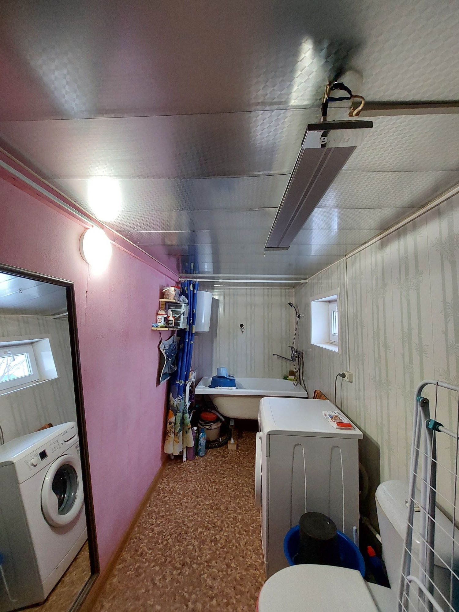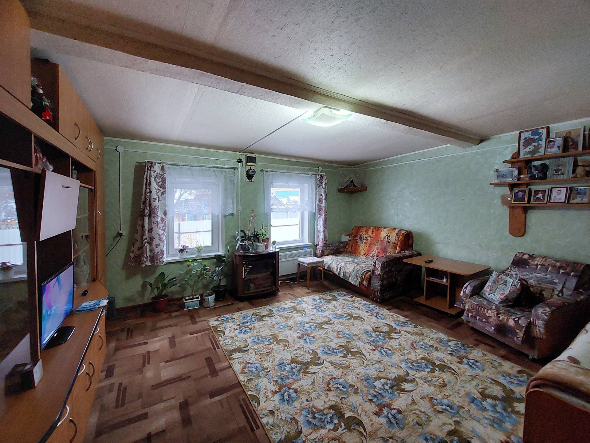 Окна и входная группа из пластика. Снаружи дом обшит сайдингом, изнутри - гипсокартоном. До дома асфальт, дорога чистая круглый год.