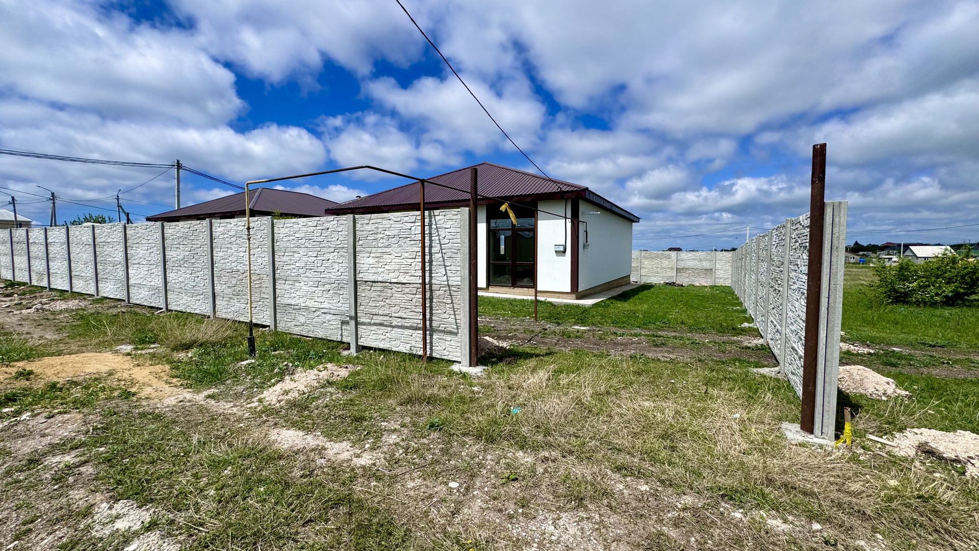 забор по всему периметру, ворота, нужно только завезти мебель.