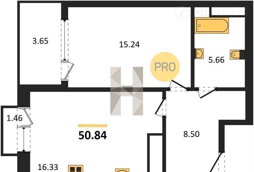 Общая площадь 50.8 м2