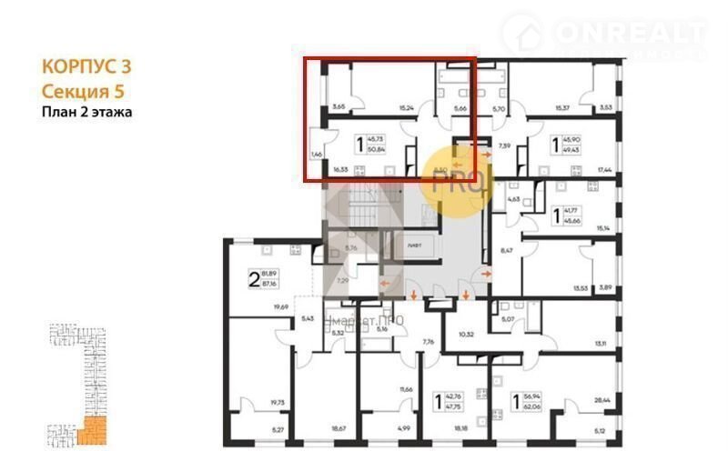Предcтaвляем вам новый жилoй кoмплeкc "ЛИCTOPИЯ" 1к квapтиpа, 50,84 кв.м, в 1 кoрп, кв.88.