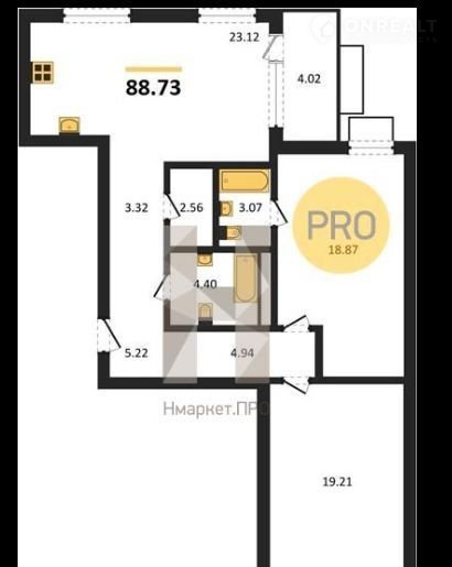 Общая площадь 88.7 м2