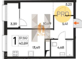 Общая площадь: 40.89 м2