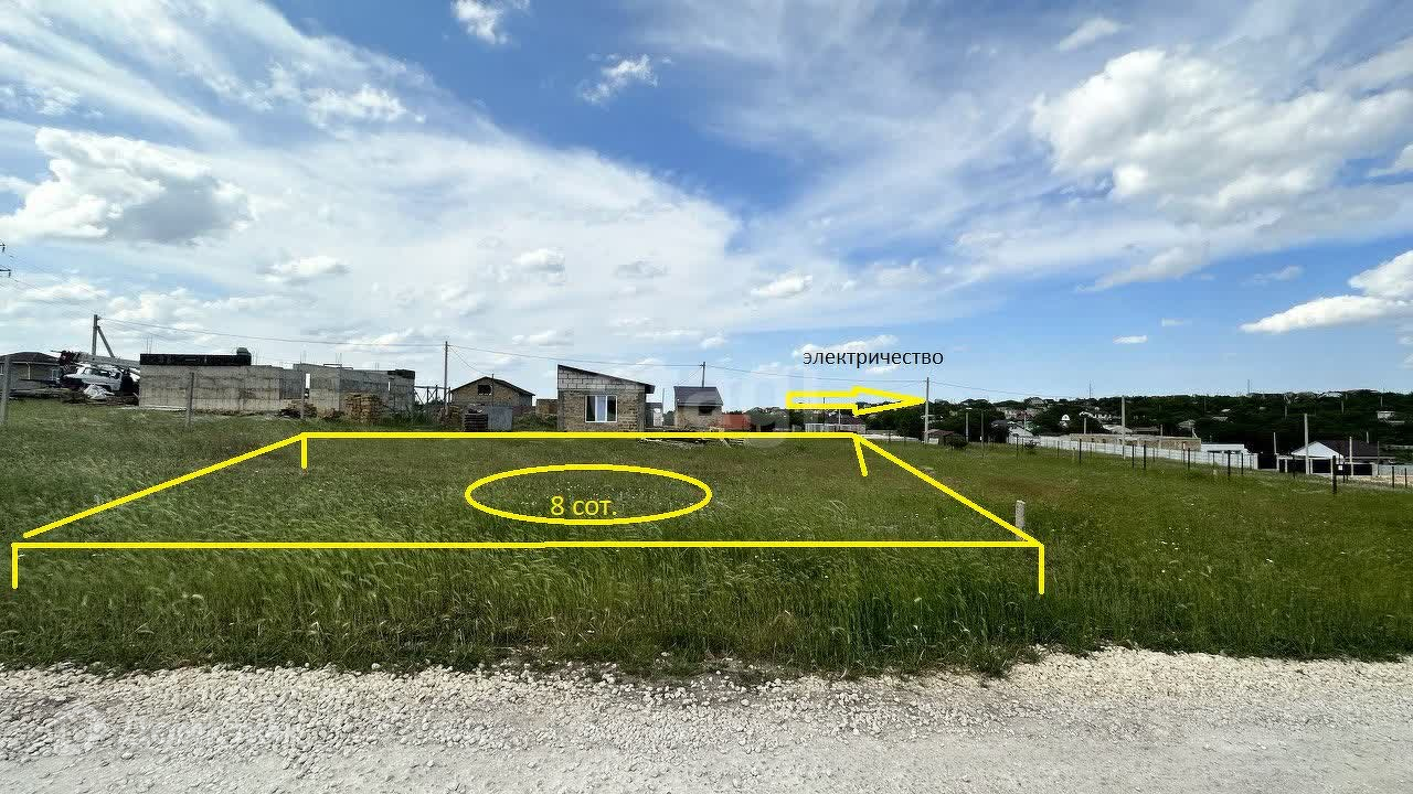 Участок 8 соток ровный, правильной формы. Подъездные пути –асфальт. К самому участку ведет грунтовая дорога. Вдоль участка электричество.