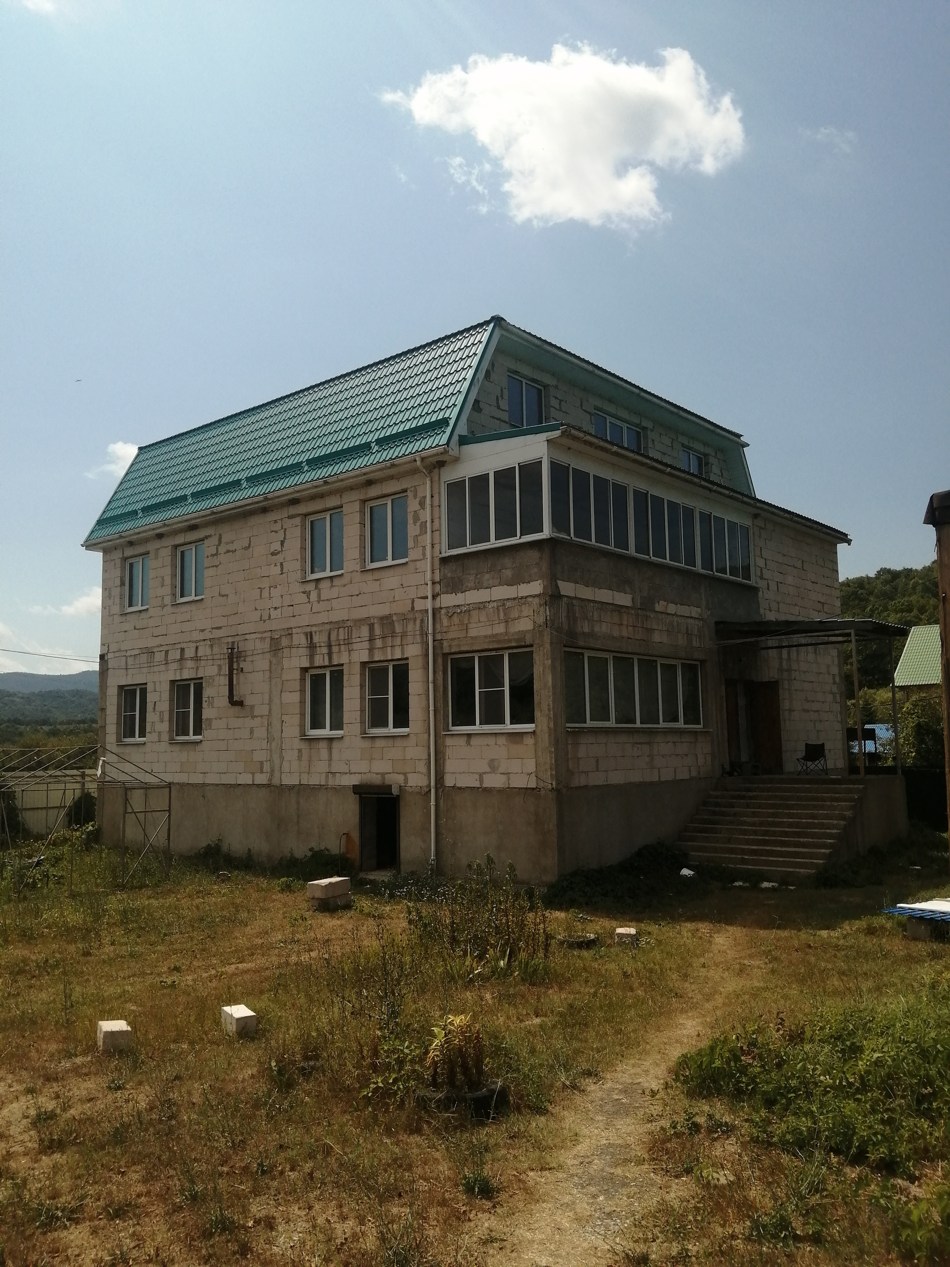 Дом 560 кв.м, без отделки, скважина 25 м, септик, газгольдер на 5 м2, доп постройки. Дом спроектирован и построен не только для проживания семьи, но и для сдачи в аренду на летний период, праздники. Весь дом в пред чистовой отделке.В доме зал 7 х 8 м, кухня 7 х 6, 3 санузла, 4 спальни, 3 гостевые комнаты, тренажерный зал, застекленная веранда с видом на горы Семашко и Два брата. В горах есть пешие туристические маршруты на горы Семашко, Два брата, Семиглавая, на водопады. В любое время года есть спрос на аренду, т.к. любимое место отдыха Туапсинцев и приезжих отдыхающих это Анастасиевские поляны.