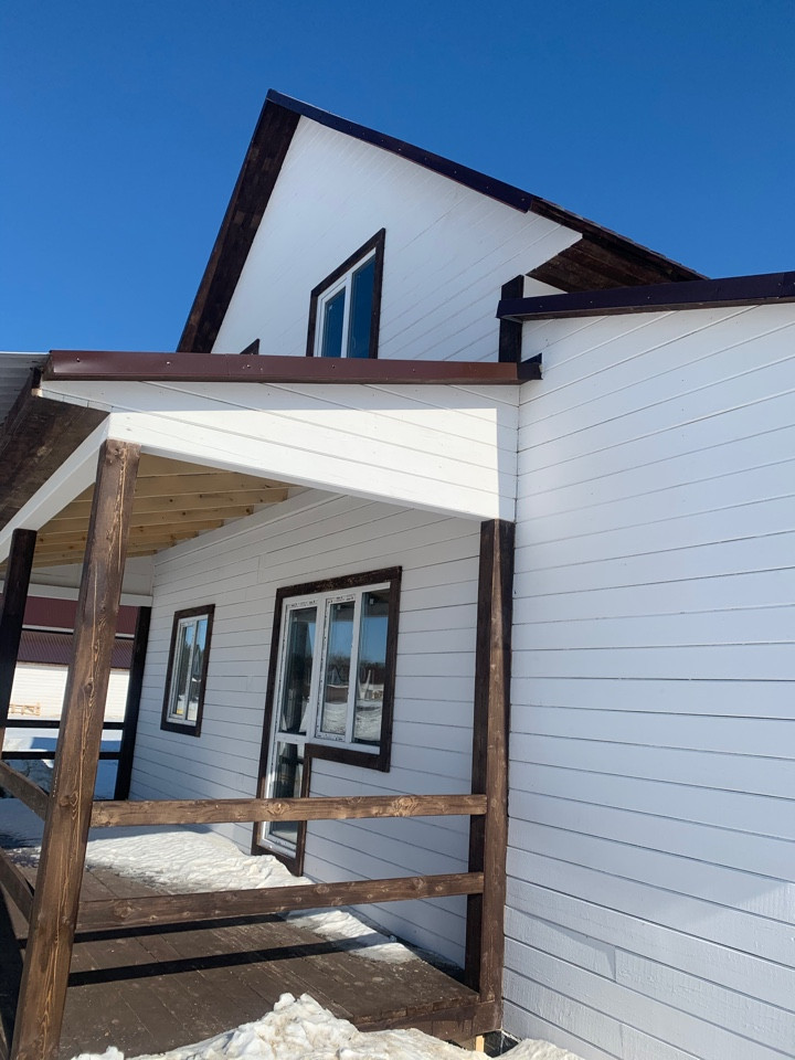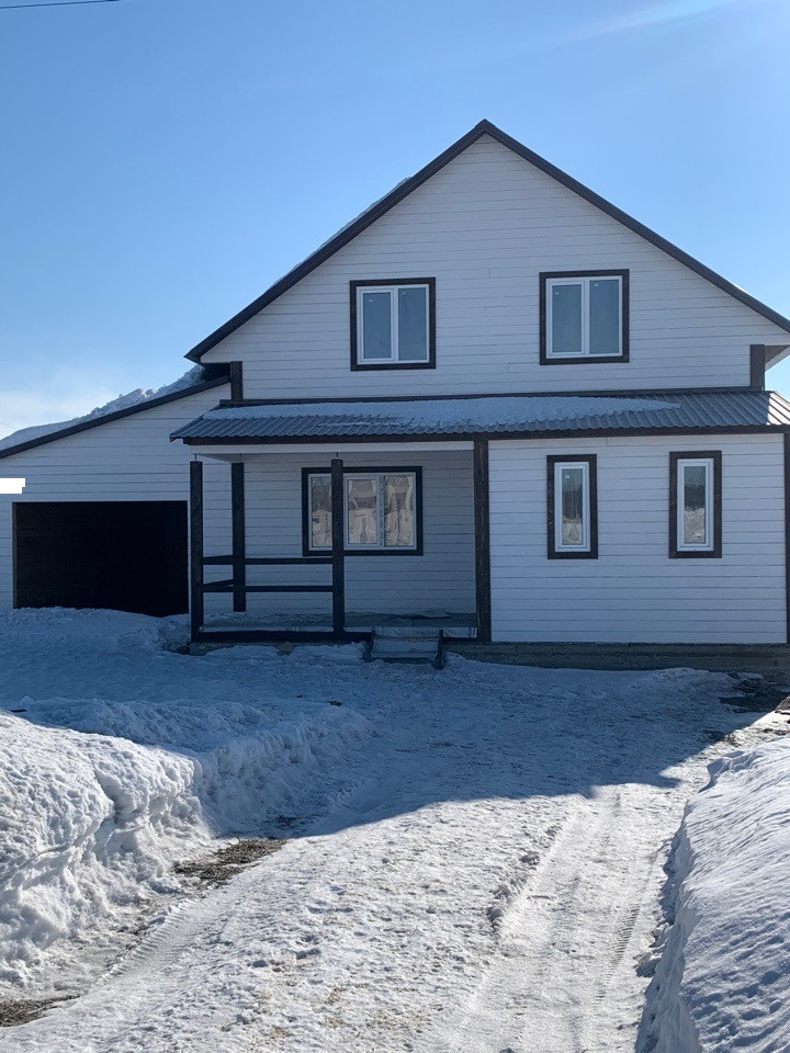 Продам новый дом с гаражом в районе Объект 1200. Общей проектной площадью 180 кв.м., на земельном участке 7,5 соток. Все в собственности. Дом выполнен из строганого бруса, стены обработаны антисептиком и окрашены, фундамент у дома ленточный, крыша выполнена из профилированного металла, полы деревянные, окна выполнены из качественных материалов. Коммуникации электричество.  Если Вам необходимо продать свою недвижимость для того, чтобы приобрести коттедж, поможем с реализацией.
