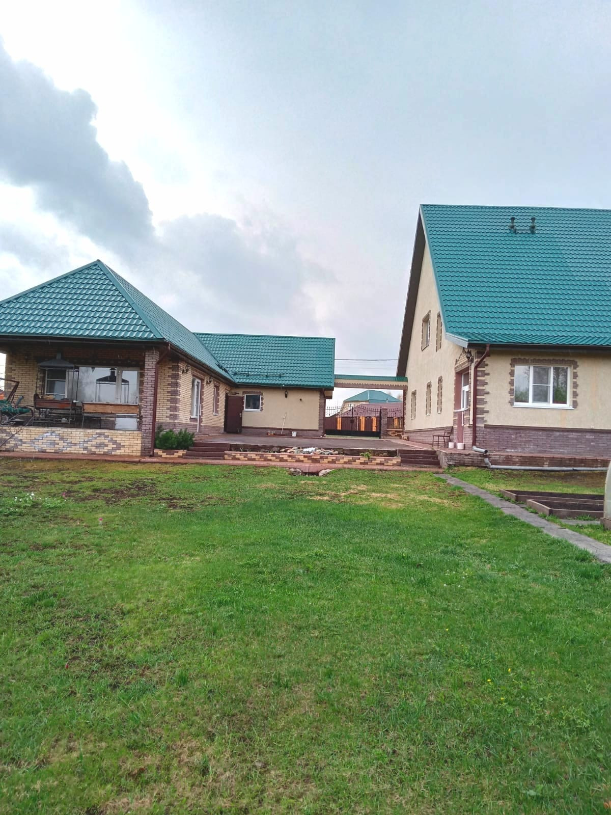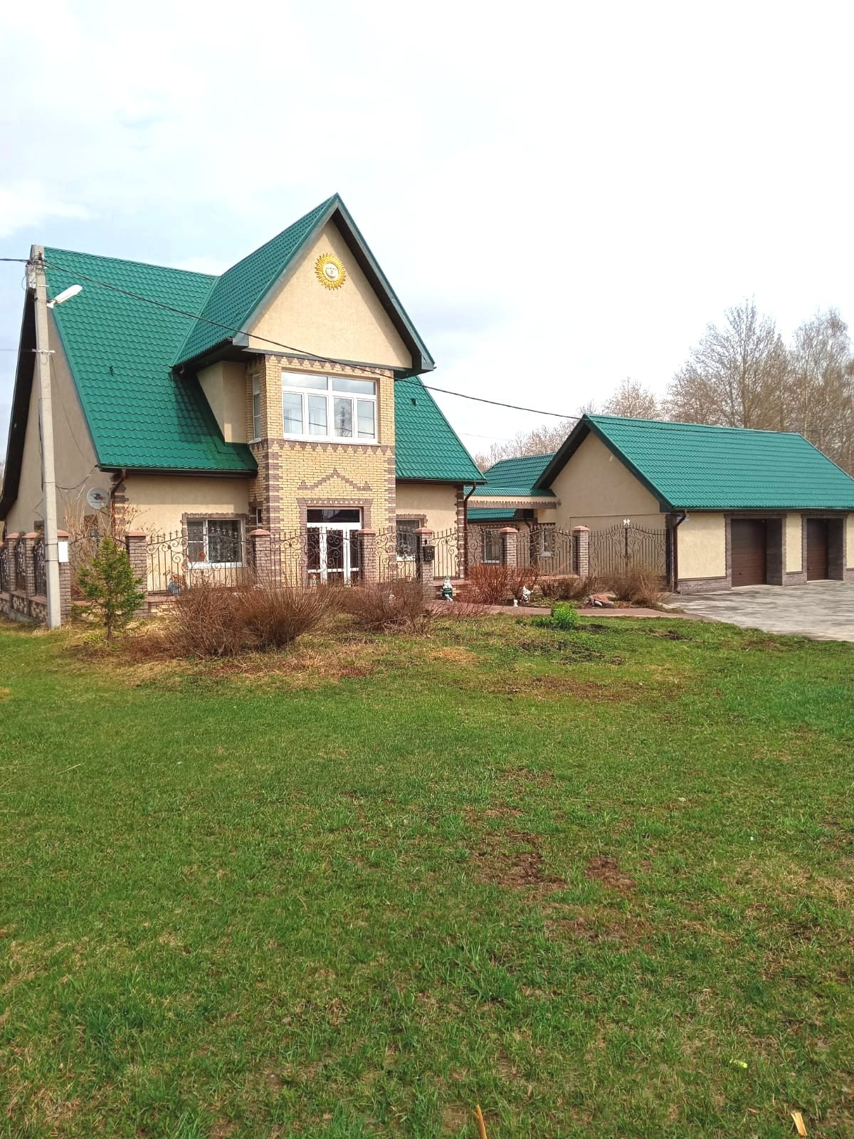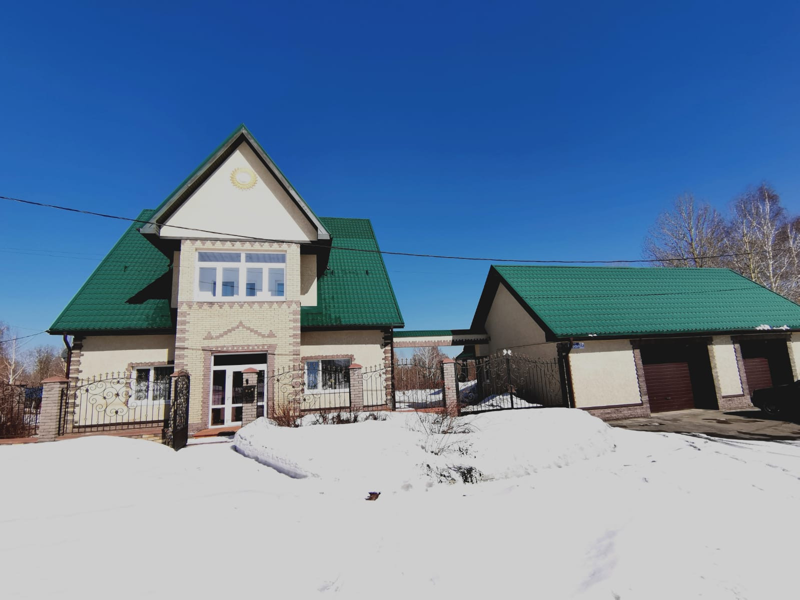 Газовое отопление, гараж на 2 машины, капитальная с отоплением и санузлом летняя кухня 60 кв.м., + хозблок, погреб сухой, сигнализация в доме , красивый кованый забор.
