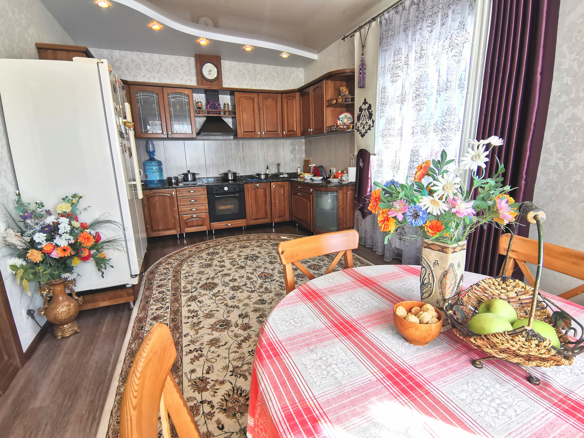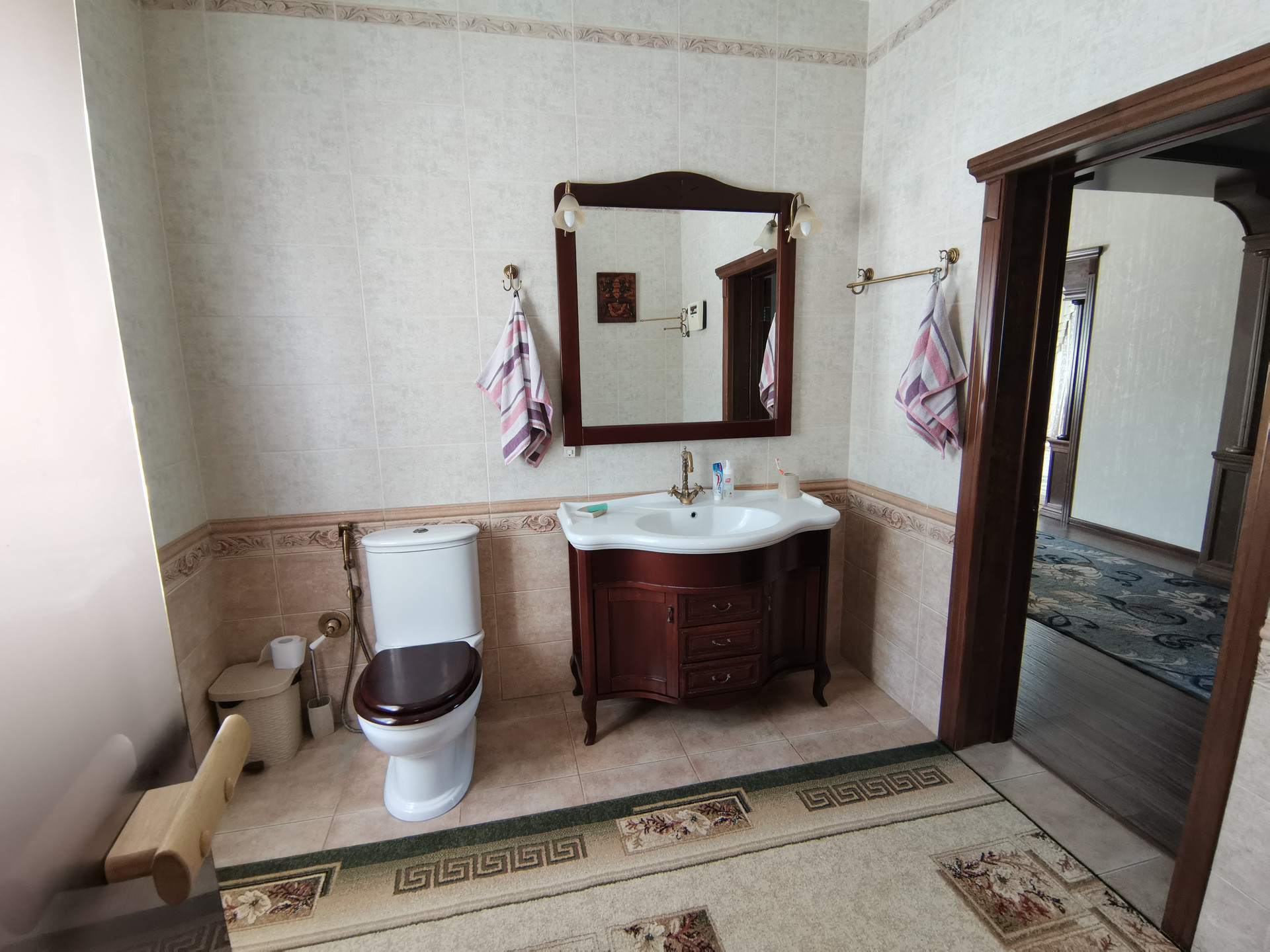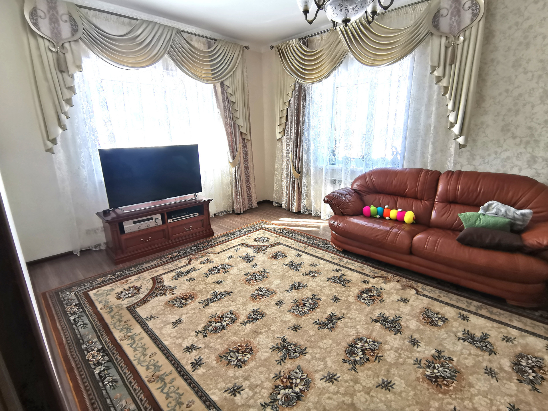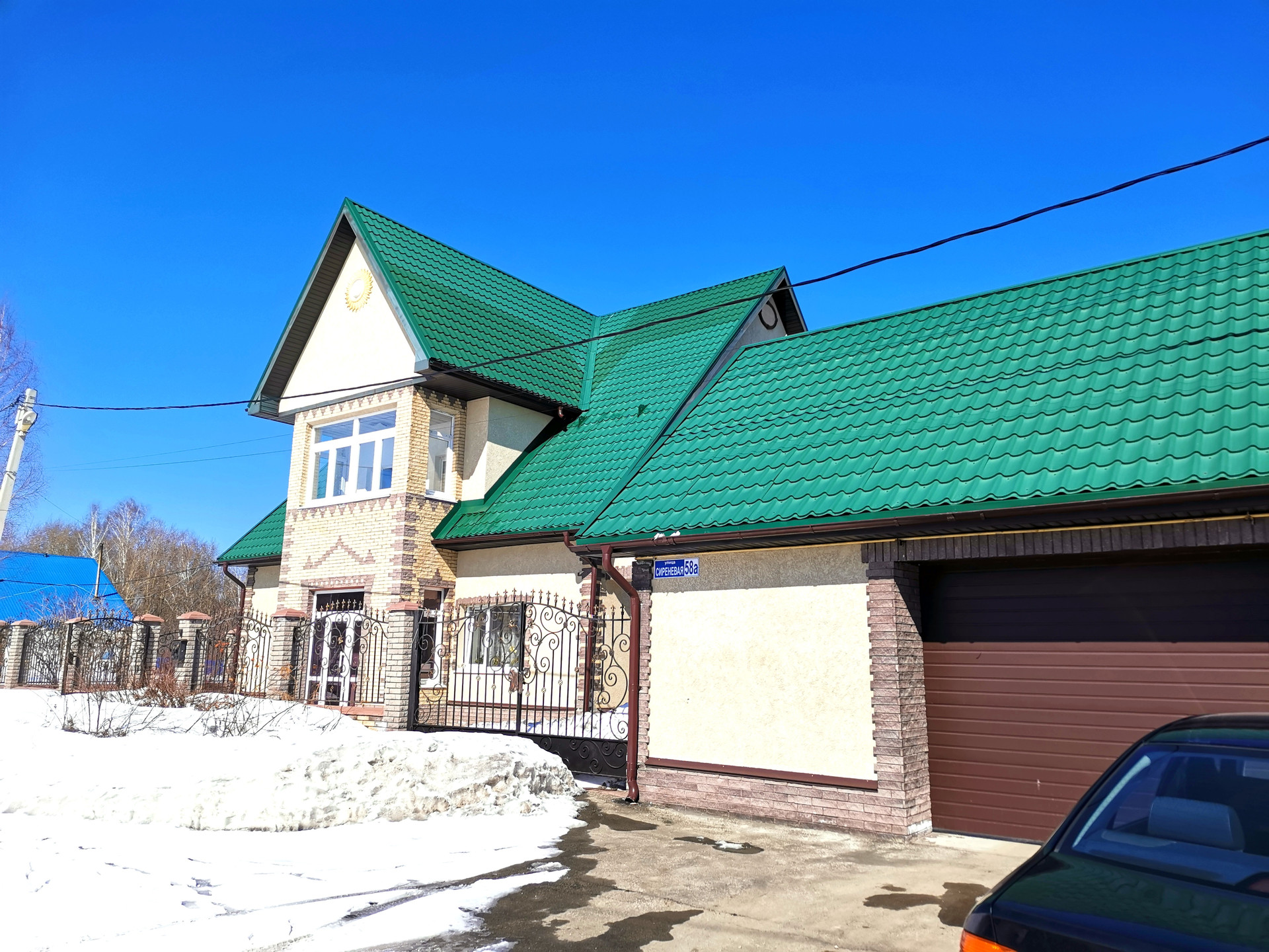 Газовое отопление, гараж на 2 машины, капитальная с отоплением и санузлом летняя кухня 60 кв.м., + хозблок, погреб сухой, сигнализация в доме , красивый кованый забор.