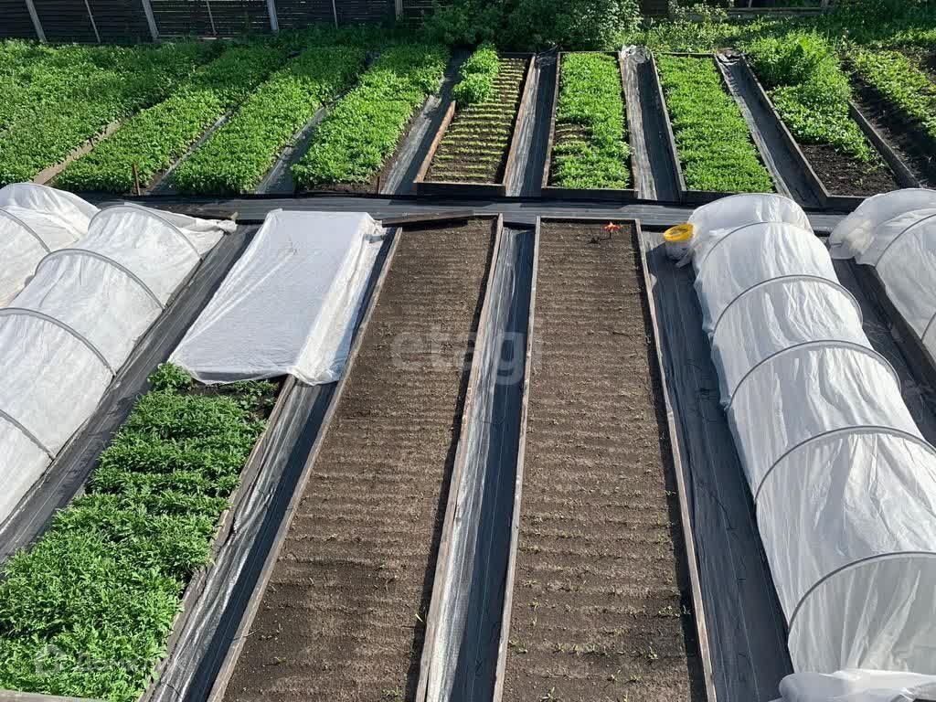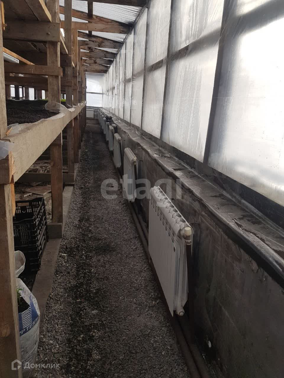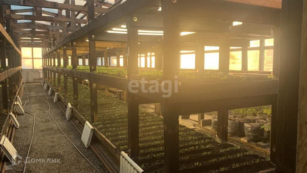 На земельном участке общей площадью 1501 м2, оборудована теплица из поликарбоната на ленточном фундаменте (ширина теплицы 12м, длина 30м, высота 4,5м в коньке, фундамент 1,5м.), внутри стеллажная система полезной площадью 360кв.м., закрытый грунт.