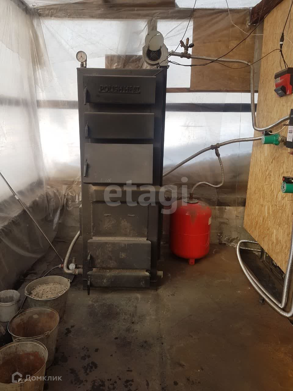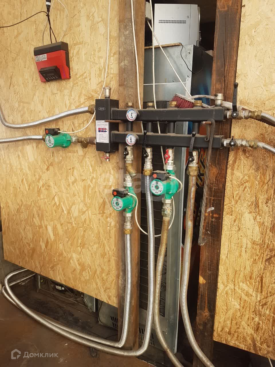 По периметру двух-трубчатая система отопления (30 батарей фирмы «Royal»), установлен котёл длительного горения фирмы «Польская жара» 80квт, установлена гидрострелка на 5 контуров. При температуре окружающей среды -45`c, внутри сохраняется температура +22.