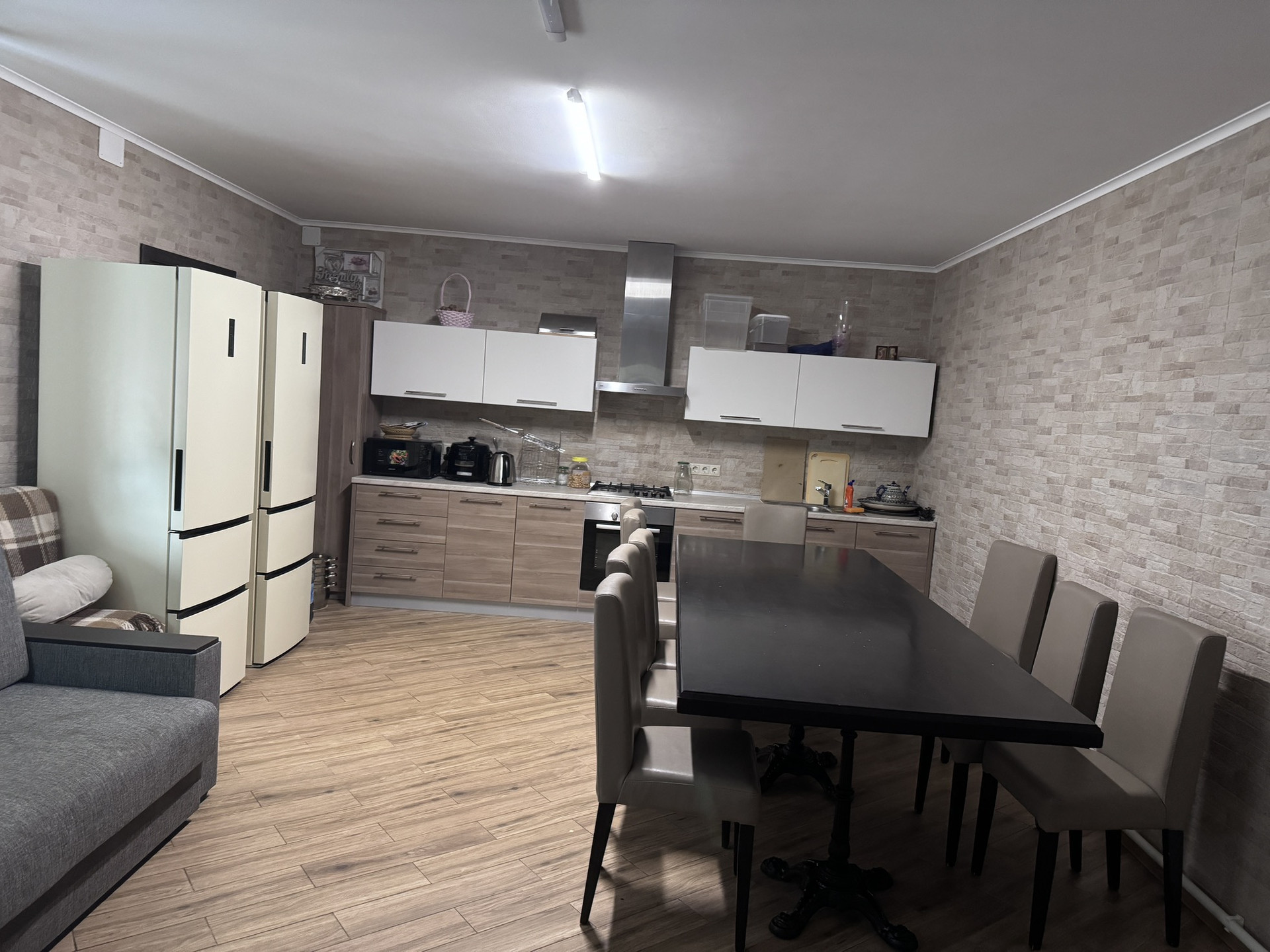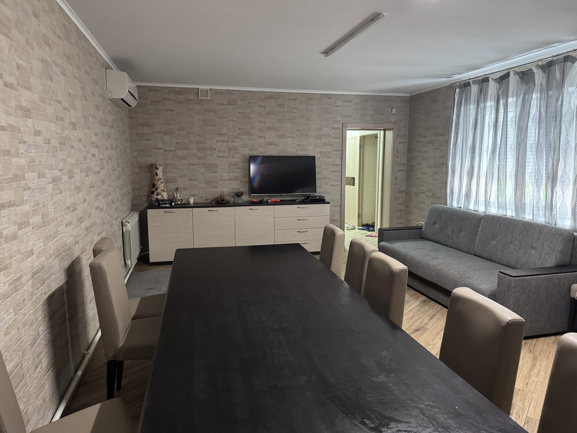 кухня-гостиная, три жилые комнаты, 2 санузла, кладовая.В доме остается много мебели, кондиционеры.