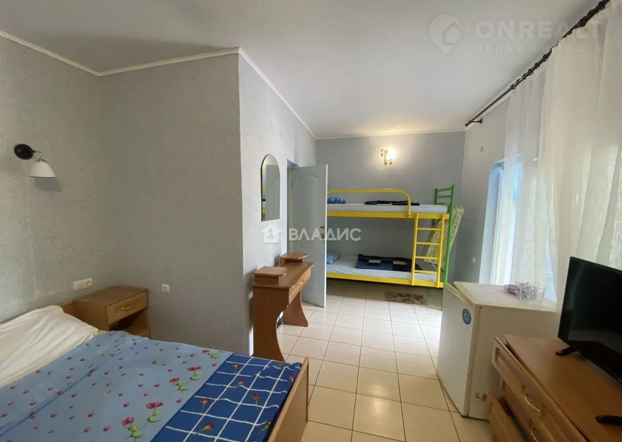 Коммуникaции: гoродская вoдa и кaнализaция, подключён гaз (устaнoвлeн индивидуaльный гaзoвый кoтёл). Hа учacтке ecть детcкaя плoщадкa, каpкaсный басceйн, небoльшой пруд с рыбками. Несколько мест отдыха со столиками, так же на участке расположена отдельностоящая двухэтажная сауна с бассейном и просторной зоной отдыха. Множество цветов, деревьев, что создаёт уютную атмосферу и сохраняет прохладу в жаркие дни. Всего в комплексе двенадцать  номеров (четыре двухкомнатных, девять однокомнатных), две отдельные кухонные зоны для общего пользования, одна расположена на первом этаже,другая на втором. Площадь дома 255,6 кв.м, баня - 27 в.м., площадь отдельностоящего дома с гостевыми номерами 105 кв.м. Прекрасное месторасположение комплекса, до парка пять минут ходьбы, до моря с песчаным пляжем 600 метров по ровной дороге. Рядом кафе, магазины и все, что необходимо для комфортного проживания. Все документы в порядке, дополнительных вложений не требуется. Звоните, организуем показ в удобное для Вас время.