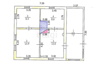 Общая площадь: 35 м2