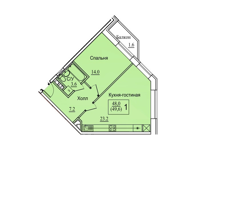 Общая площадь 80 м2