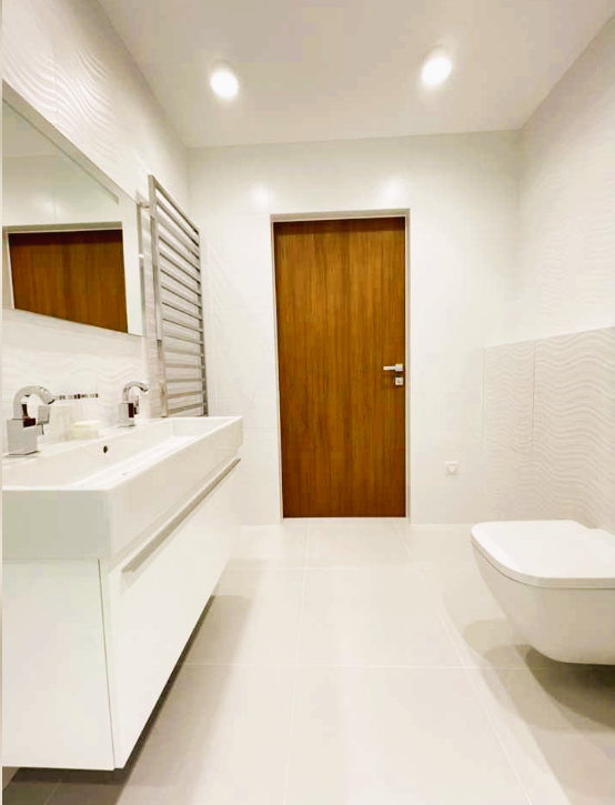 1 этаж: Гардероб 14м^2, кухня 22м^2, прачечная 6м^2, зал/столовая 46м^2, кабинет/ спальня 16м^2, патио 2 сот. 2 этаж: Мастер-спальня с гардеробом и собственным сан узлом 46м^2. 2 спальни по 21м^2 каждая с общим сан узлом . В доме произведён капитальный ремонт включающий себя: Полная реконструкция таунхауса с дизайнерским ремонтом. Проведено усиление конструкций металлом, сделано капсюльное Утепление полеуритановой пеной, установлена межэтажная и межкомнатная звукоизоляция, заменены стеклопакеты, перекрыта Крыша, заново установлен камин с заменой всех труб, установлено премиальное отопительное оборудование, Кондиционирование и приточно-вытяжная установка с рекуперацией . Пол - натуральное дерево. Для ремонта использованы премиальные отделочные материалы и Сантехника ( Duravit и Villeroy & Boch) . Встроенные шкафы с подсветкой, везде двойной свет. Охранная и пожарная сигнализация , выведенная на пульт охраны посёлка . Высоко скоростной интернет - проводной и по сети wi-fi. Установлена современная кухня с техникой Bosh премиальной линейки ( холодильник, морозильник, винный шкаф, посудомоечная машина, варочная поверхность, духовой шкаф, микроволновая печь, измельчитель отходов в раковине. Имеется прачечная с стиральной и сушильной машинами Miele.