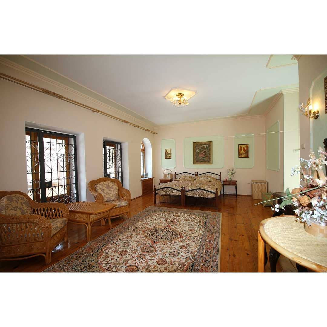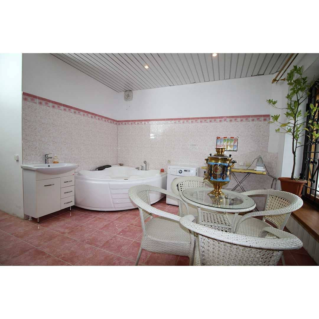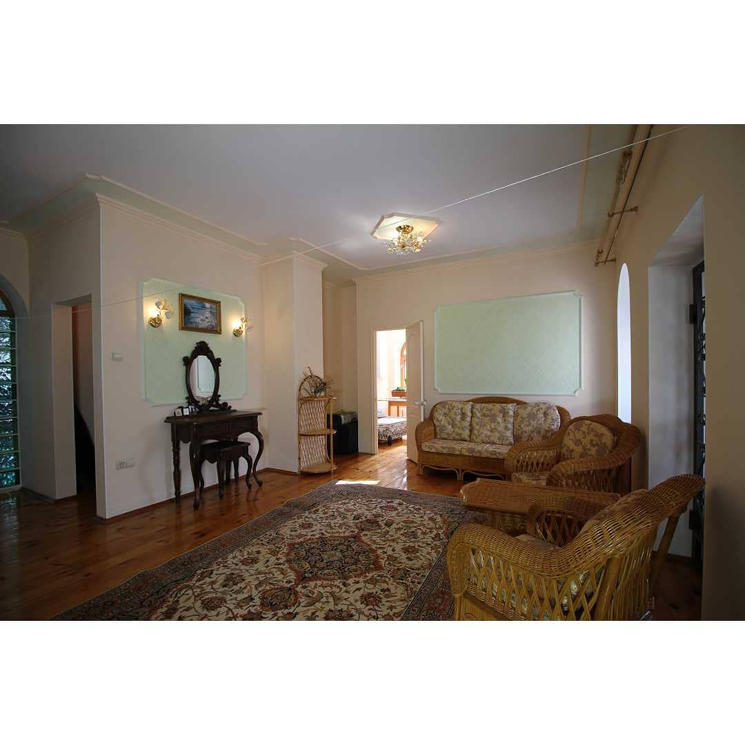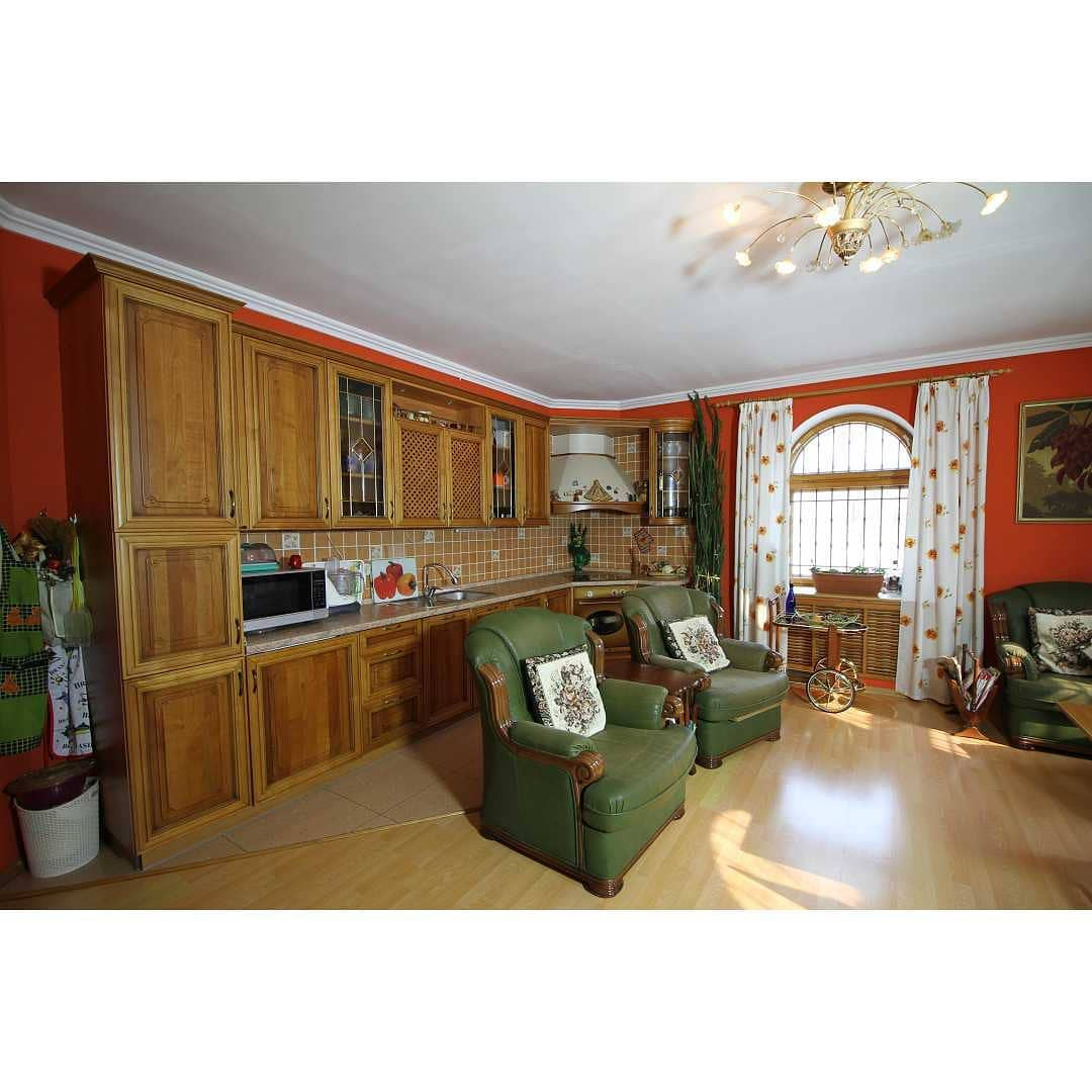 Первый этаж 150 кв.м: кухня-гостиная, комната отдыха с камином, две спальни, хоз комната с сауной и джакузи, два санузла.