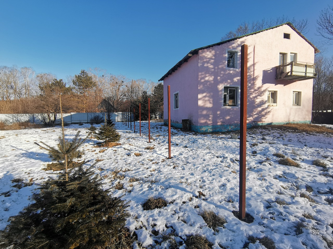 Баня,дровяник.Участок огорожен забором из металлопрофиля.