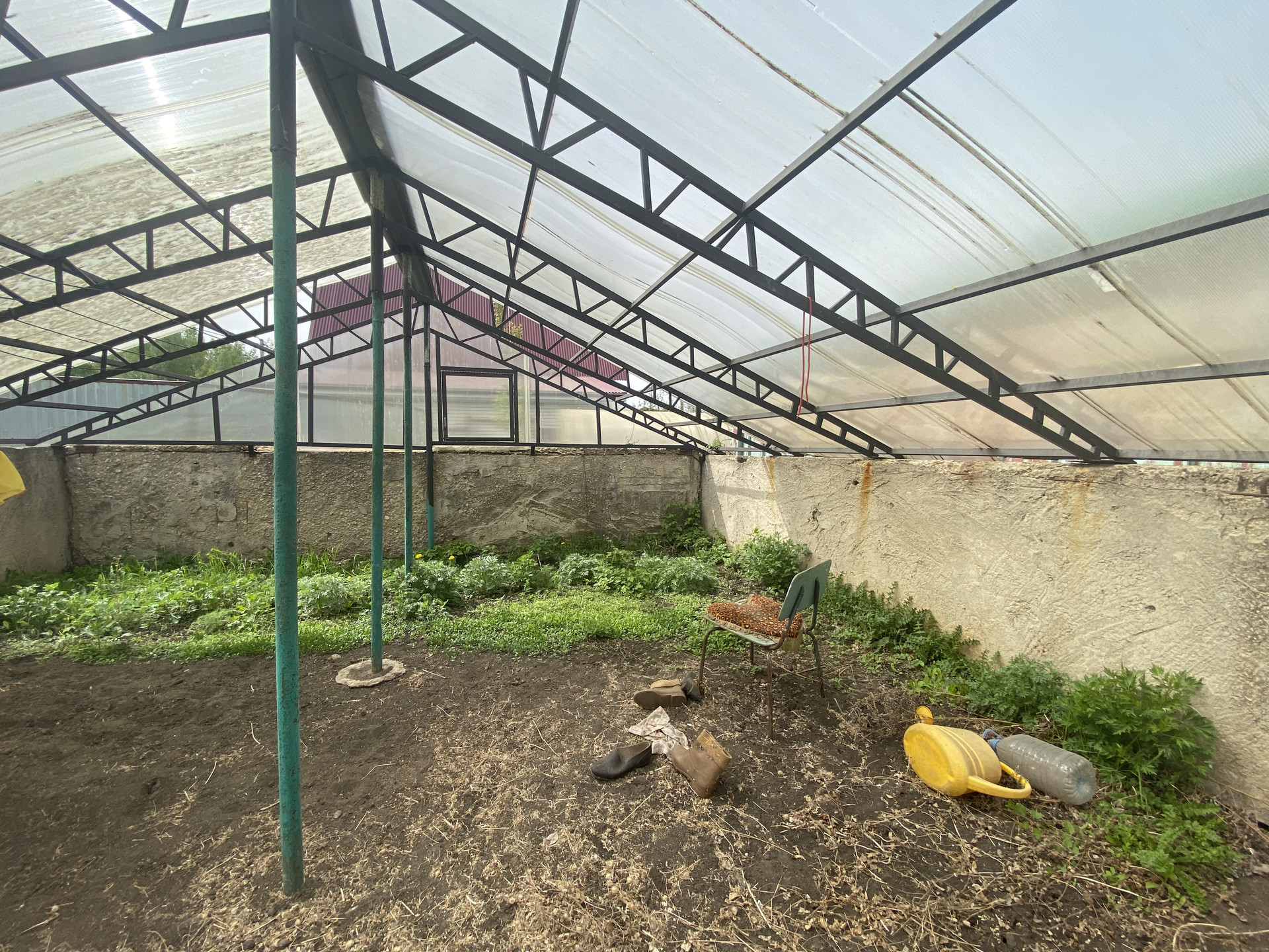 Хоз постройки: теплица из поликарбоната, контейнер, навес (место для отдыха.