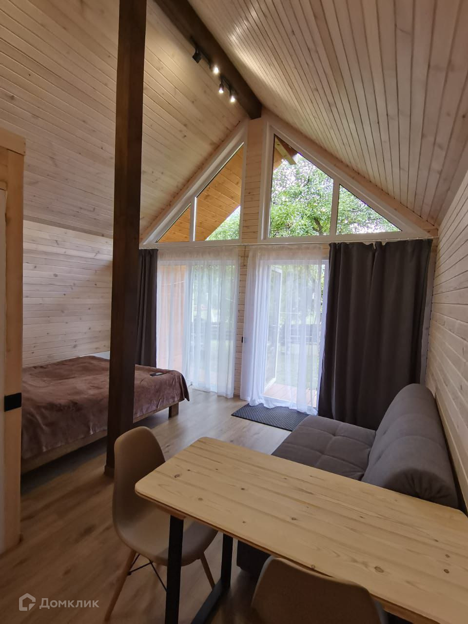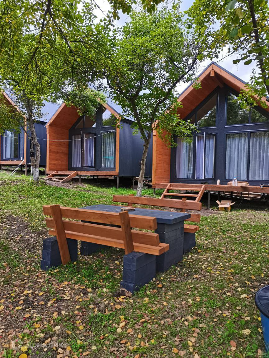 На участке 4 домика (по 25 кв.м) для круглогодичного проживания. Дома построены из сип-панелей. Наружная отделка: металлопрофиль. Внутренняя отделка: евровагонка. Санузел: кафель. Дома комфортабельные: горячая и холодная вода, санузел с душем, раковина, унитаз. В комнате двуспальная ортопедическая кровать, диван с ортопедическим основанием на 2 спальных места, кухонная зона. Баня.