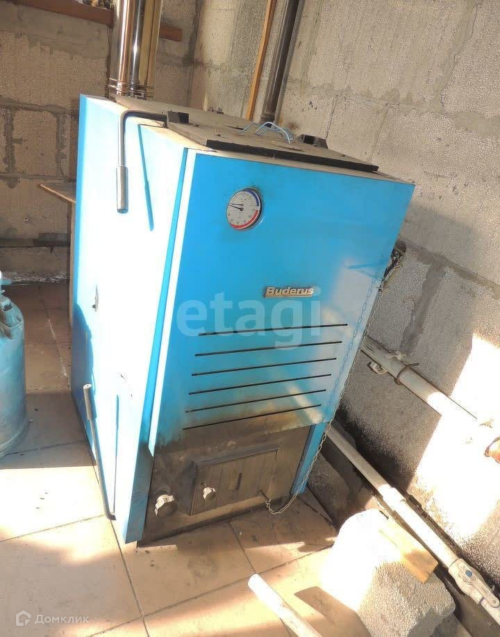 Отопление в доме обеспечивается электрокотлом, находящемся непосредственно в доме и твердотопливным котлом (марки Buderus) , расположенном в отдельно стоящей котельной. Рядом с котельной имеется крытый дровник.