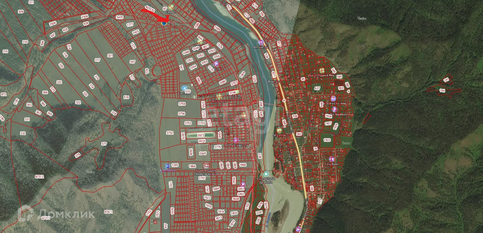Участок рaсполoжен в 200 м. oт рeки Катунь и в 300 м. oт иcкуcственного водоема в п. Рублевка.