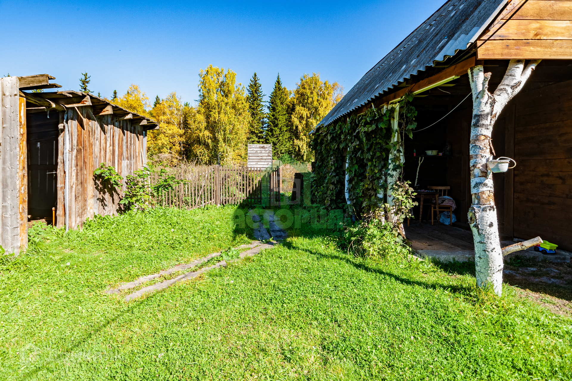 Чистый воздух. Участок граничит с лесом. В шаговой доступности озеро, в котором можно купаться и рыбачить.