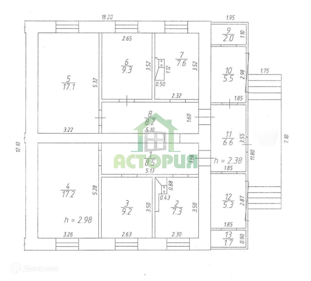 Высота потолков 2.98 м