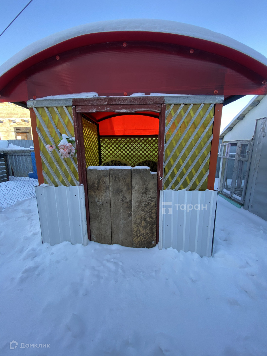 Участок огорожен профнастилом.