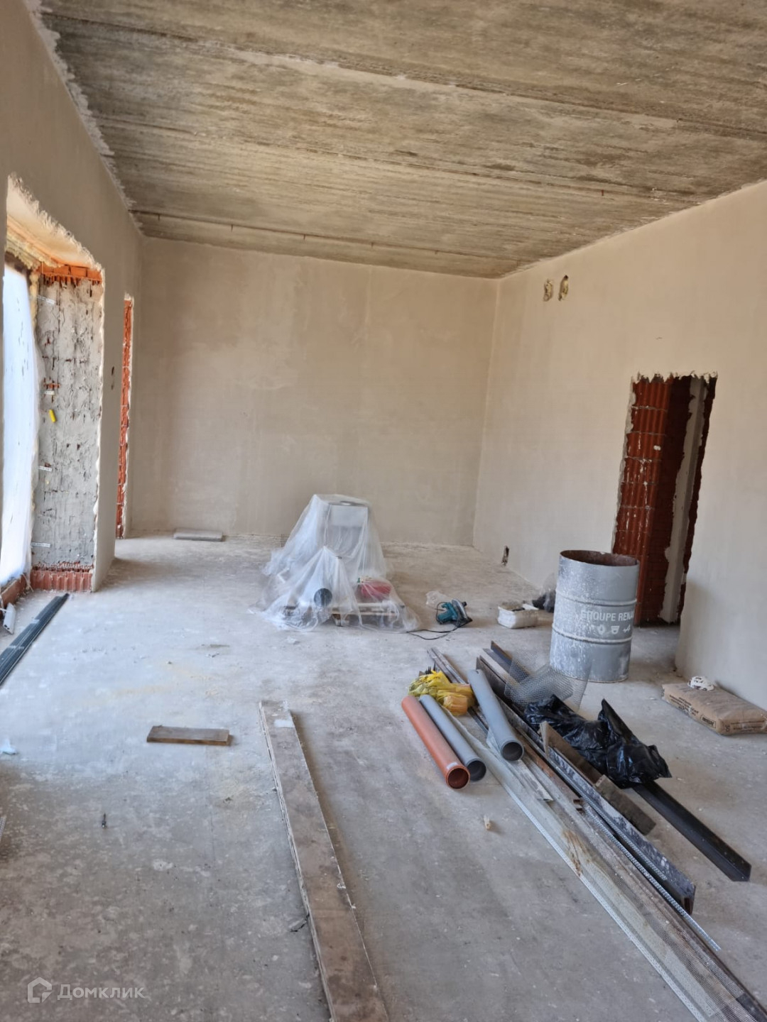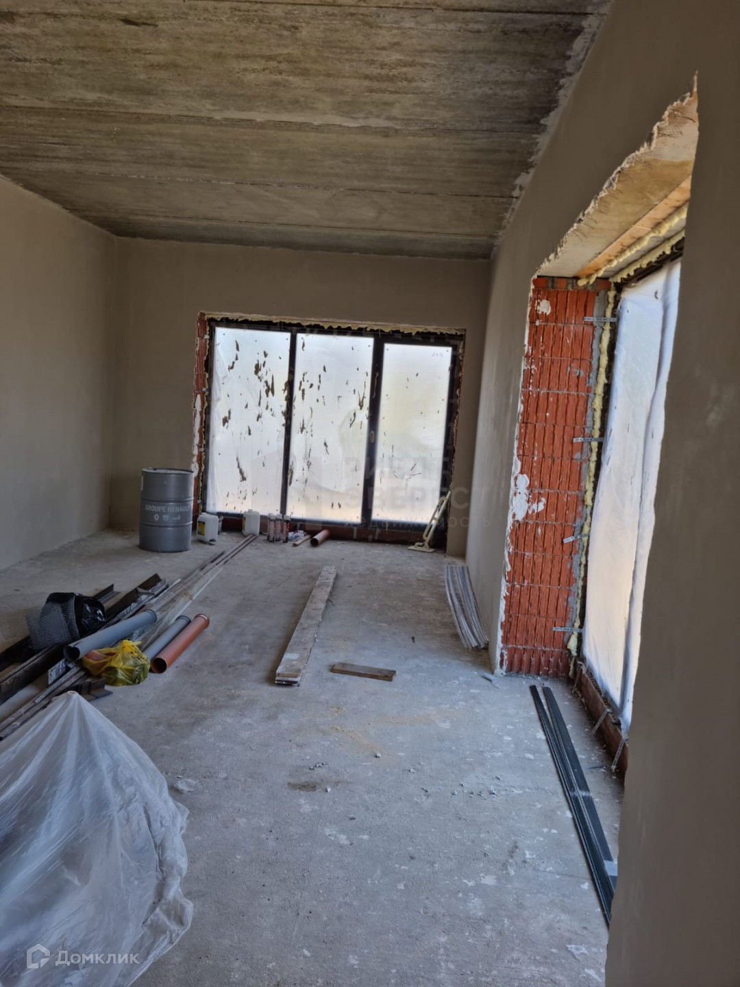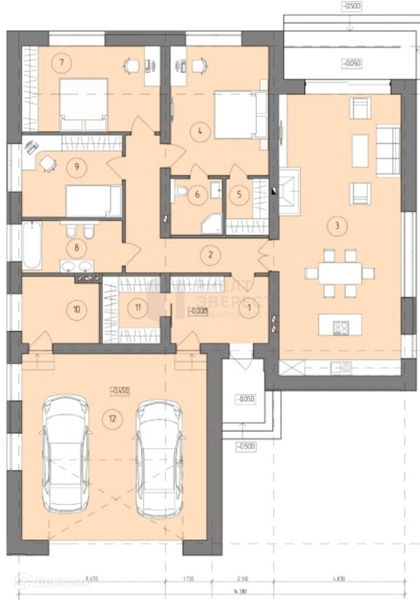 Три отдельные комнаты, большая кухня-гостиная, тамбур, холл, гардеробная, бойлерная, гараж сорок восемь квадратных метров.