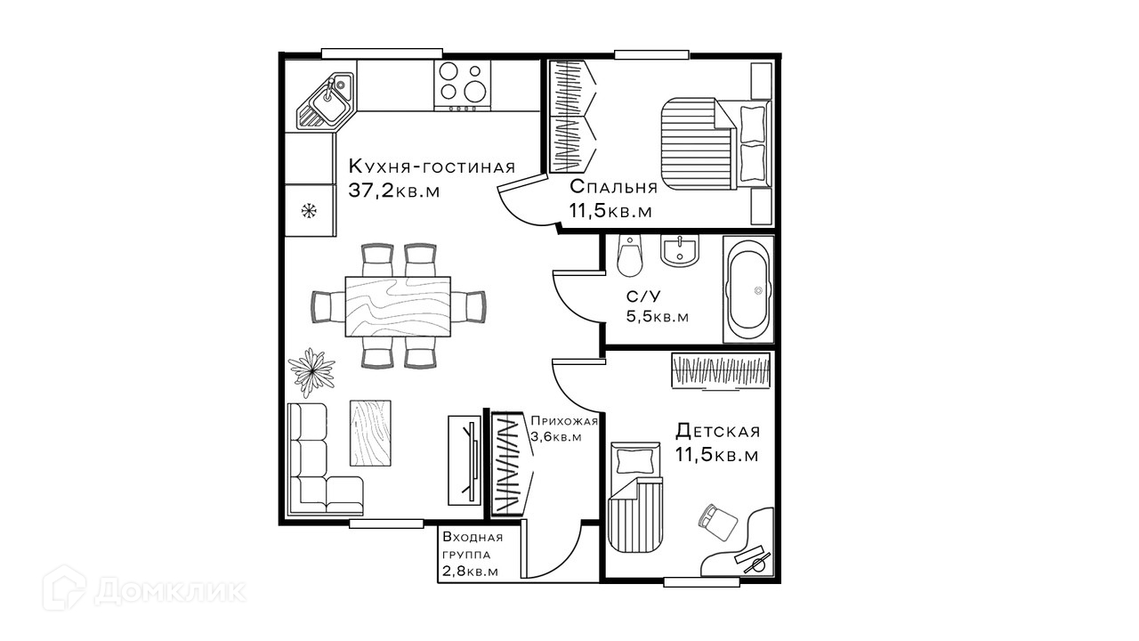 Жилая площадь 72 м2