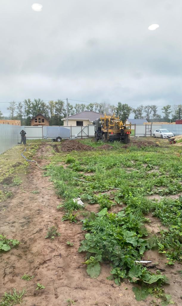 На участке размечен и прокопана траншея под фундамент заглубление 25 см пробурены сваи 2.20 в глубину арматура на фундамент закуплена и на сваи уже связана размер фундамента 8х10, к фундаменту от щита подведён бронепровод 4.10