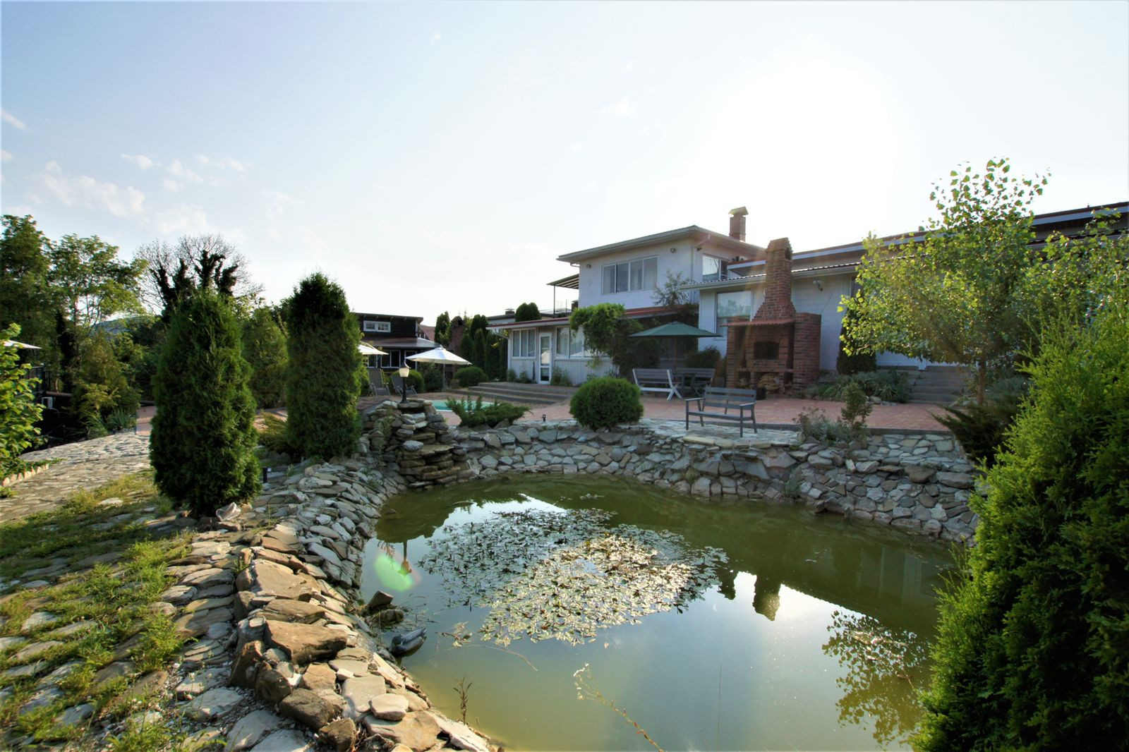 Вся территория озеленена и ухожена, пруд с рыбой. Дом полностью готов для проживания и для сдачи в аренду круглогодично! На территории обустроены парковочные места.