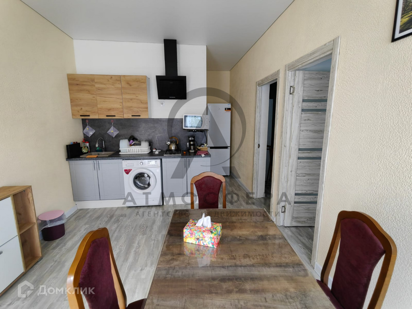 Дом - четыре  изолированные комнаты и большая кухня-столовая 40 м2, совмещенный санузел.