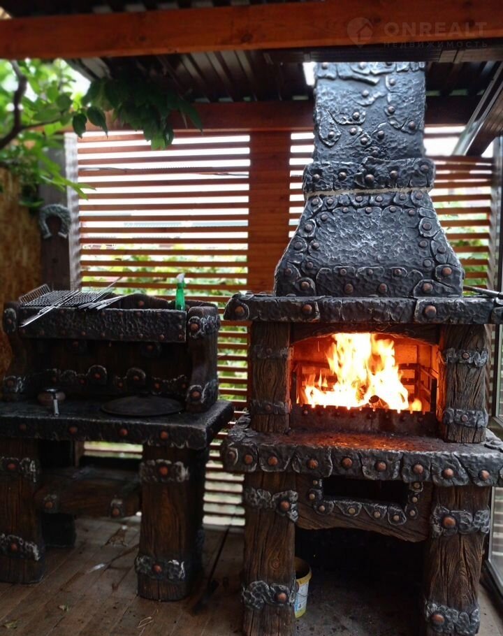 ✔️ Дворик для отдыха и большая беседка с Хурмой, мангальной зоной выполненной из архитектурного бетона: