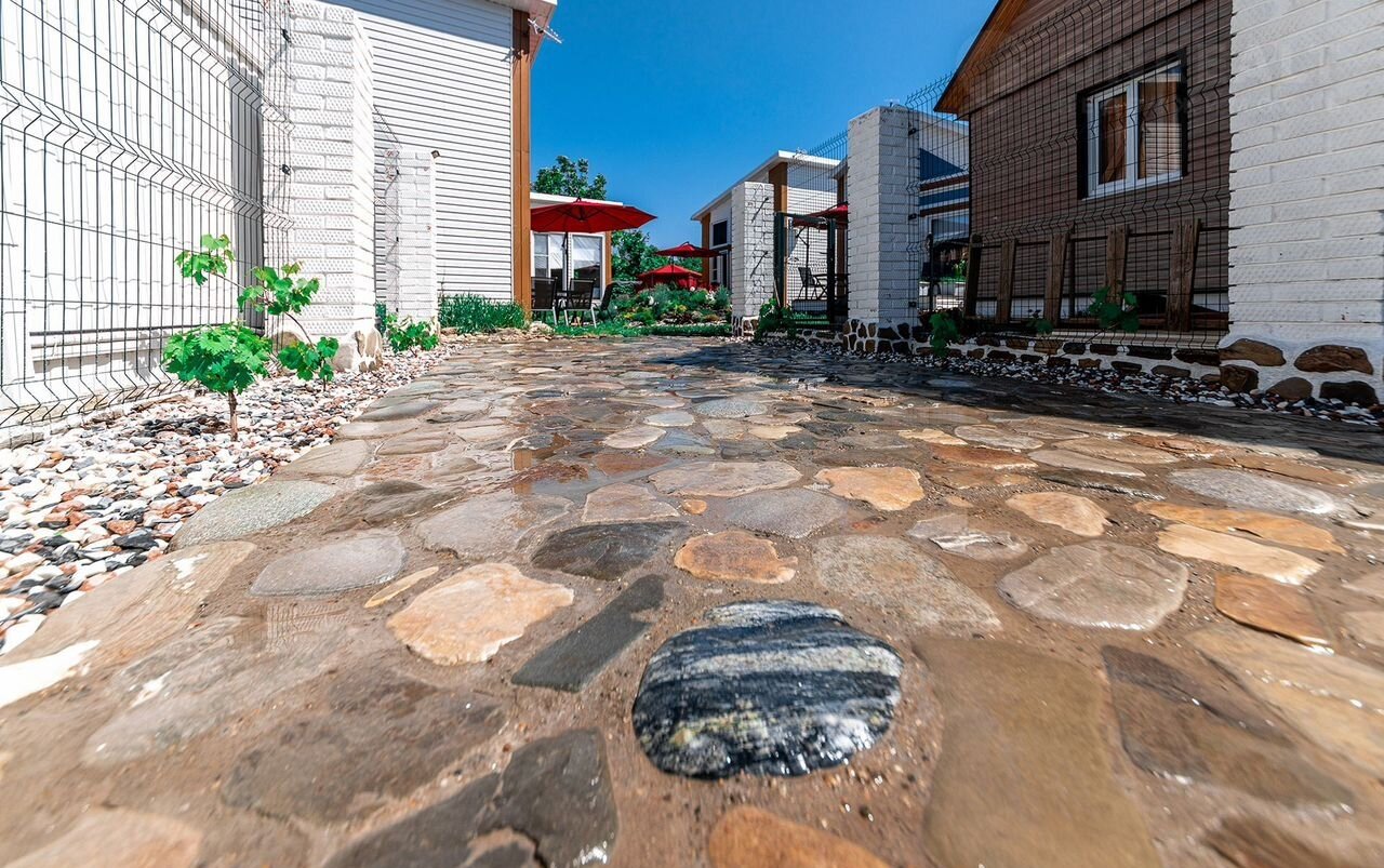 На территории расположено 4 отдельностоящих дома, у каждого дома есть своя терраса с оборудованой обеденной группой;